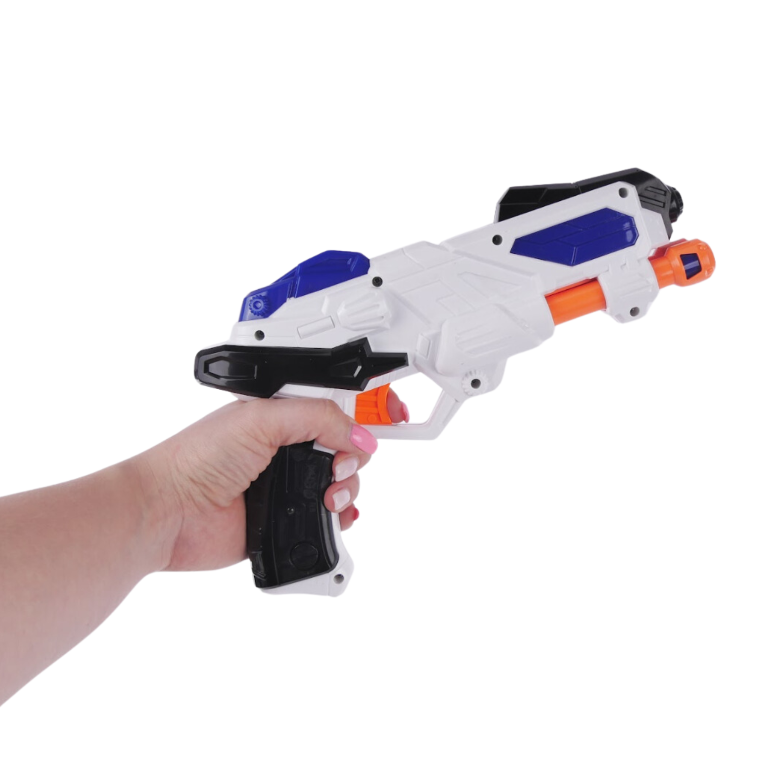 Pistolet posiada efekty dźwiękowe i świetlne, które dodają realizmu i emocji podczas zabawy.
