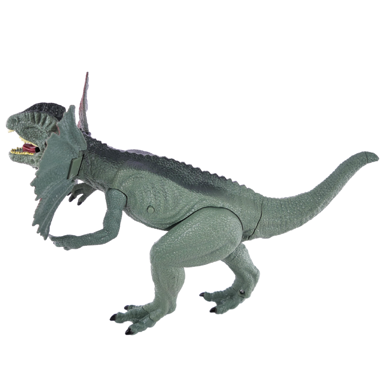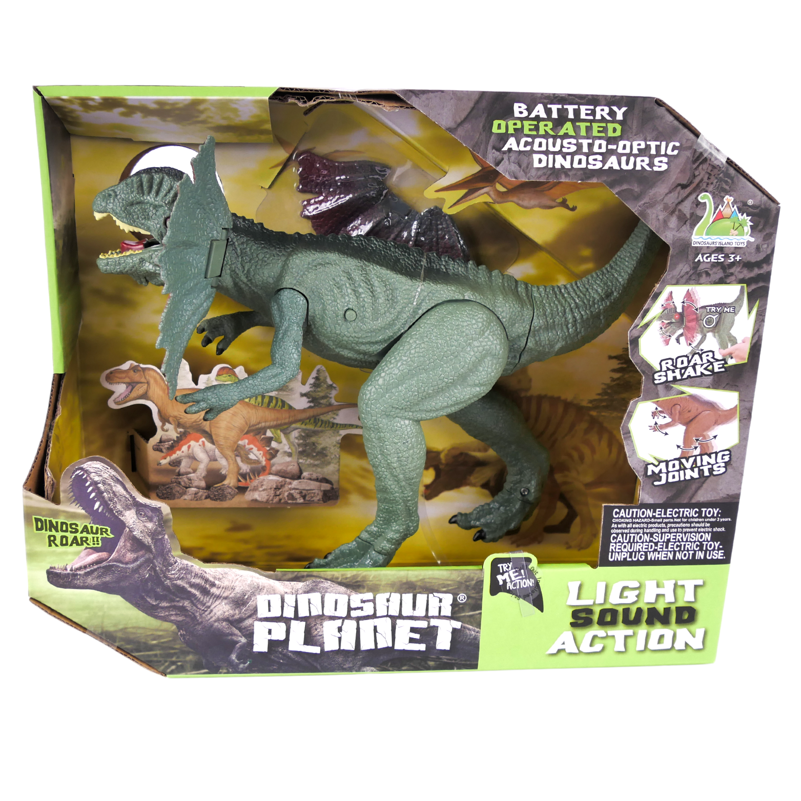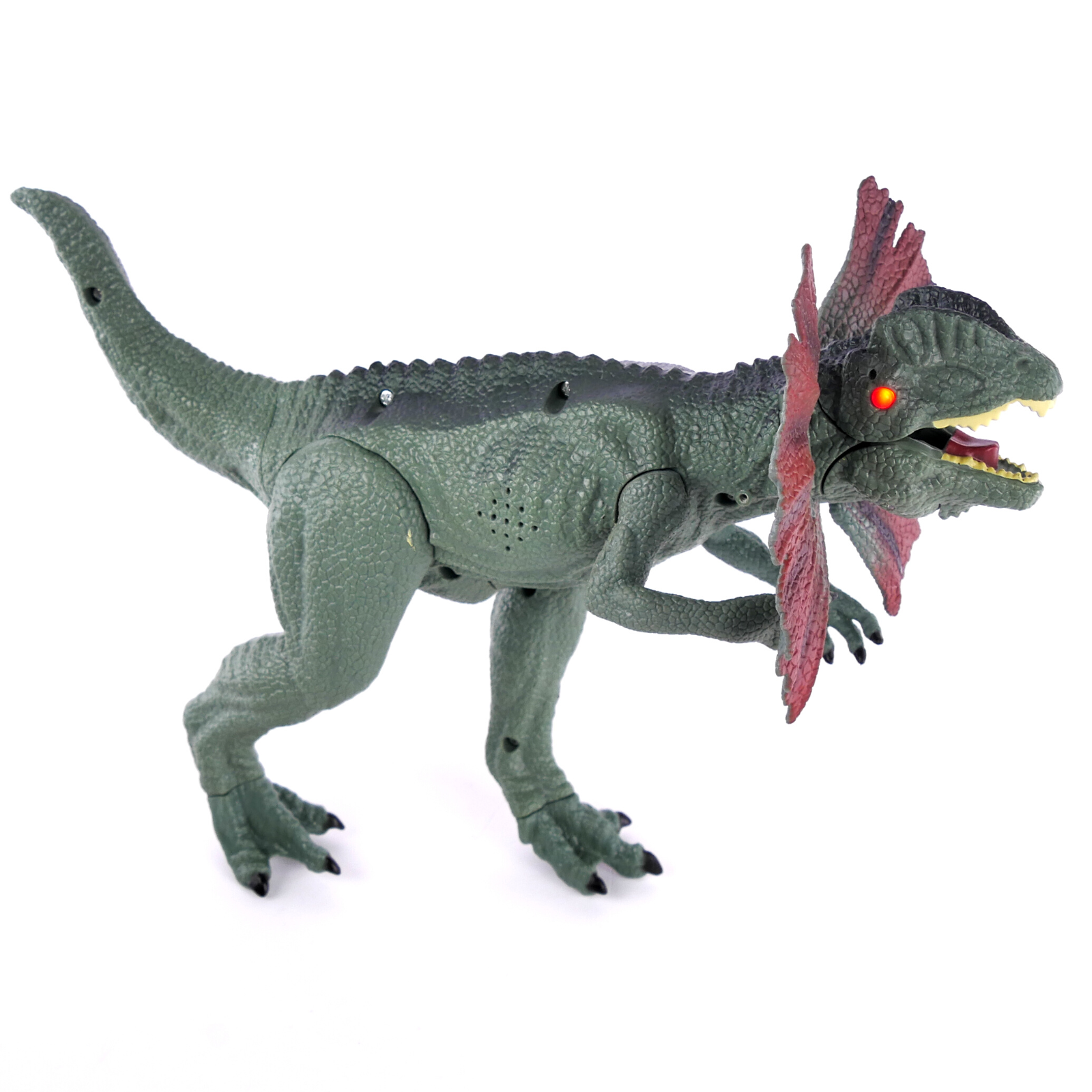 Oprócz efektów świetlnych, dinozaur wydaje przerażające dźwięki, które przenoszą dziecko do epoki dinozaurów. Figurka posiada ruchomą paszczę, która otwiera się i zamyka. Wewnątrz znajdują się odwzorowane zęby i język, co nadaje zabawce jeszcze bardziej realistycznego wyglądu.