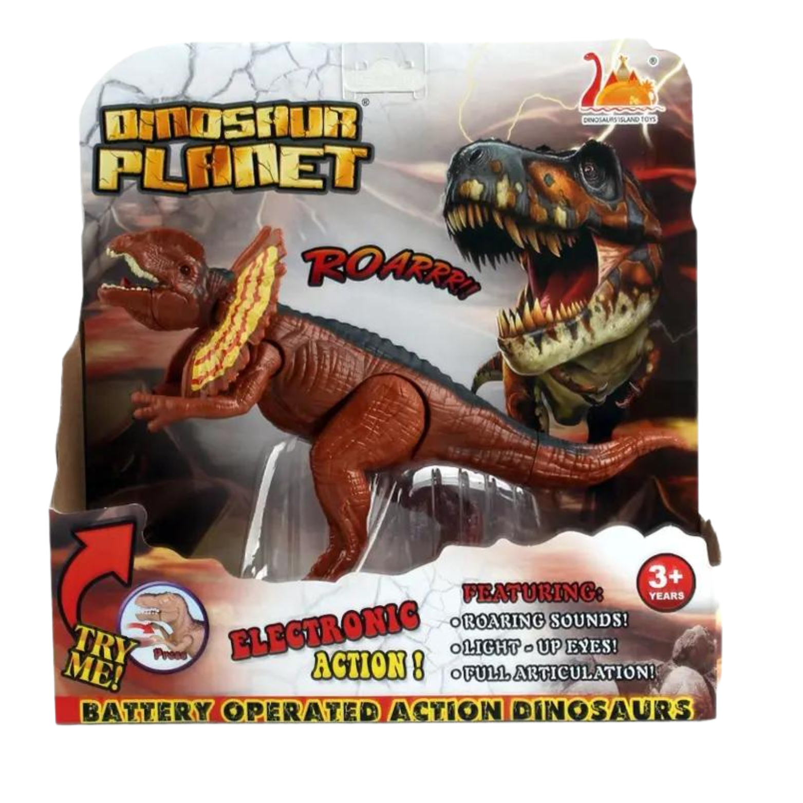 Dinozaur jest wyposażony w efekty świetlne, które nadają mu realistyczny wygląd. Jego świecące oczy sprawiają, że wydaje się jakby był naprawdę żywy!
