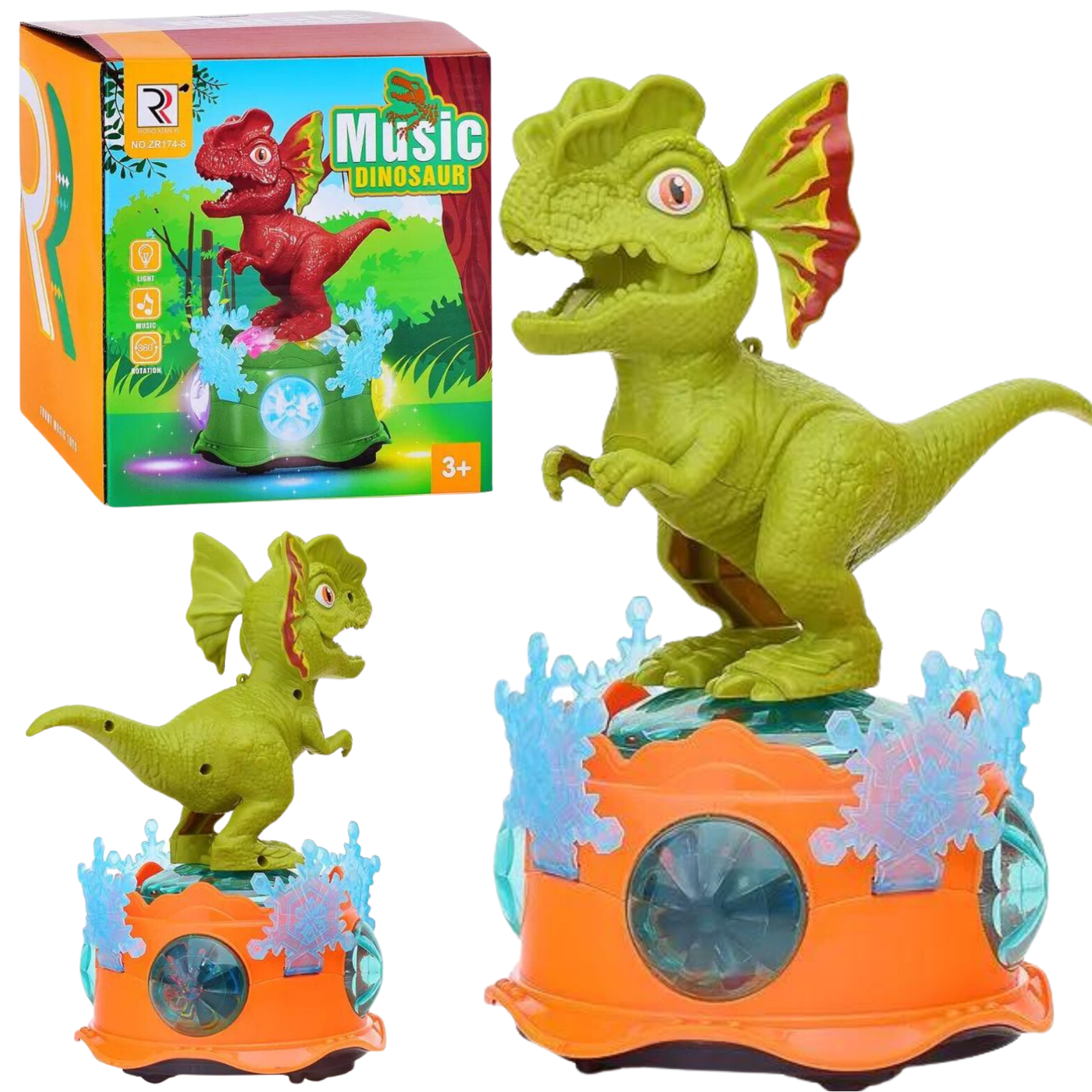 Dinozaur porusza się w rytm wydających przez siebie dźwięków. Postać obraca się w dowolnym kierunku, w akompaniamencie wyjątkowych melodii.