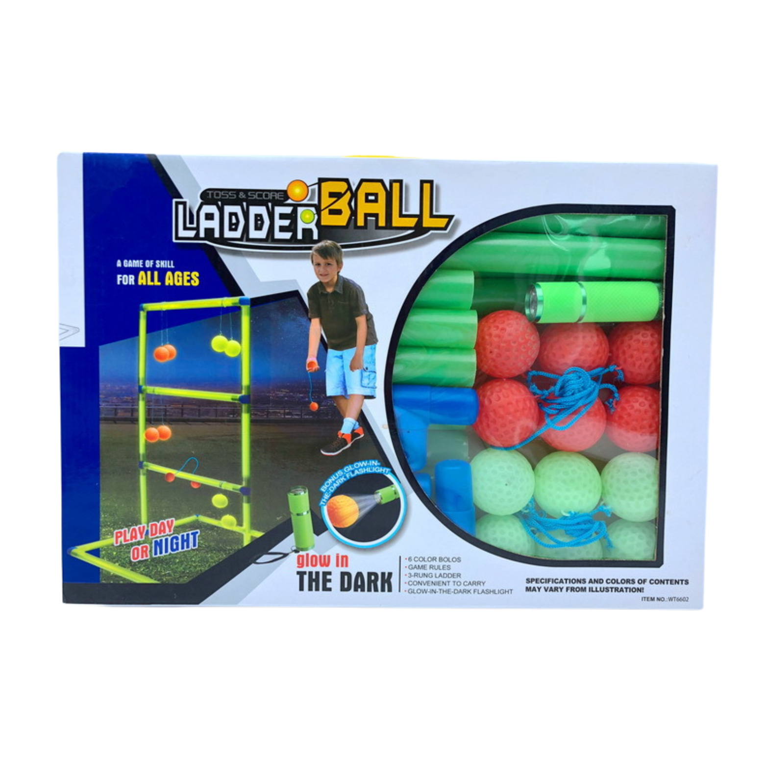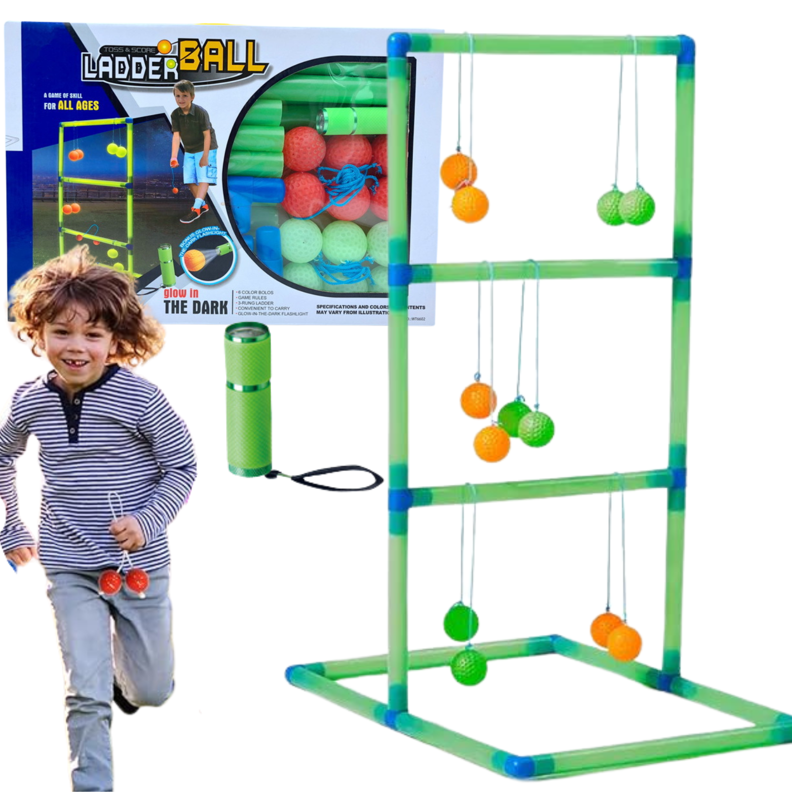 Wciągającym i unikalnym elementem gry jest świecąca w ciemności drabinka, która pozwala na grę w ciemnościach. Piłki również można oświetlić, używając specjalnej latarki, dołączonej do zestawu. Drabinka jest łatwa w montażu i demontażu, dzięki temu można ją zabrać wszędzie ze sobą i cieszyć się niesamowitą grą, niezależnie od miejsca.
