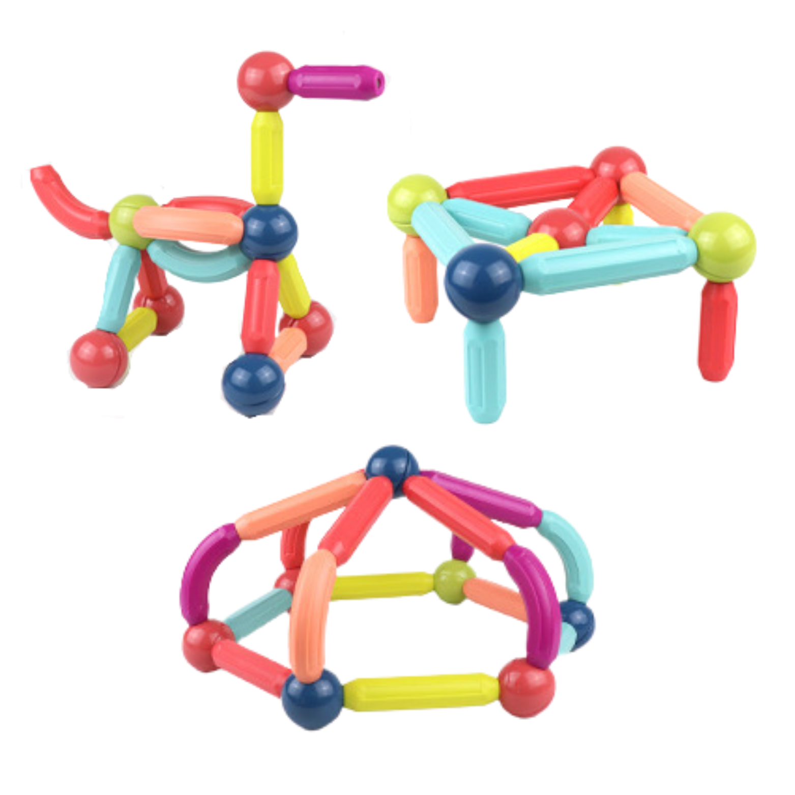 Zestaw ten rozwija zdolności praktyczne dzieci, kształtuje umiejętności myślenia przestrzennego oraz doskonali koordynację ręka-oko. Magnetyczne pręty i kolorowe kulki zachęcają do eksperymentowania i konstruowania, a instrukcje pozwalają na zbudowanie modeli, jednocześnie dając swobodę tworzenia własnych struktur.