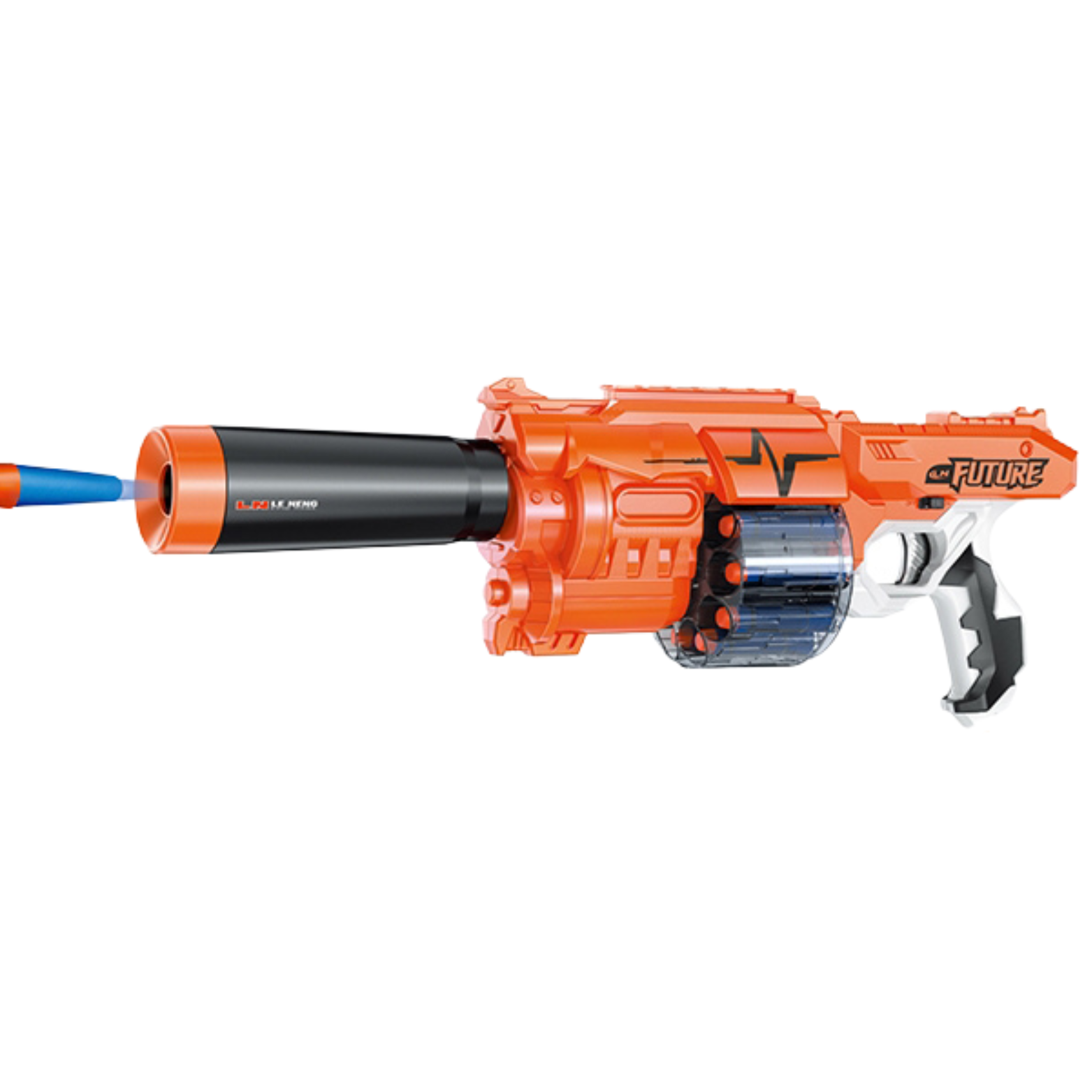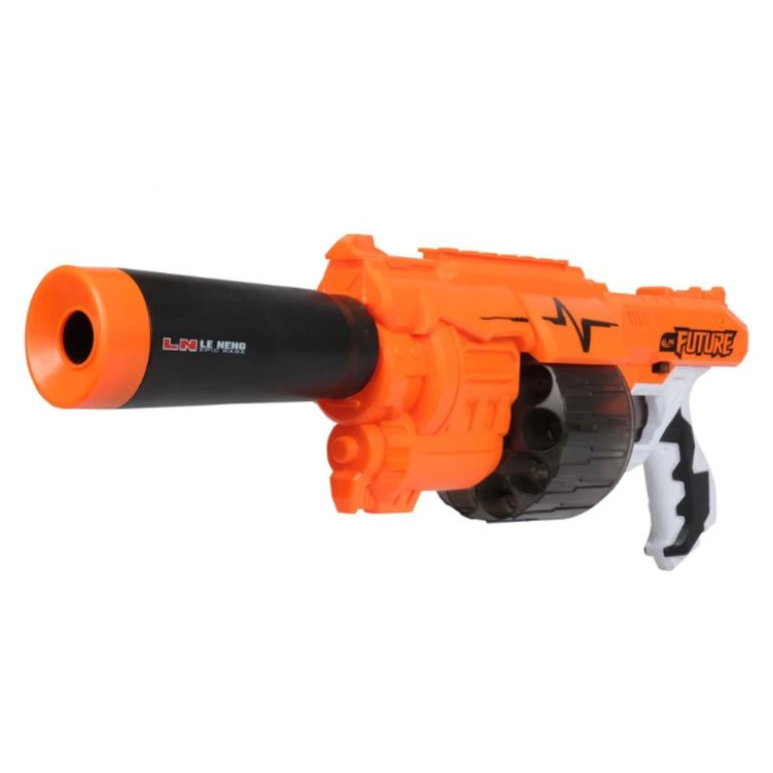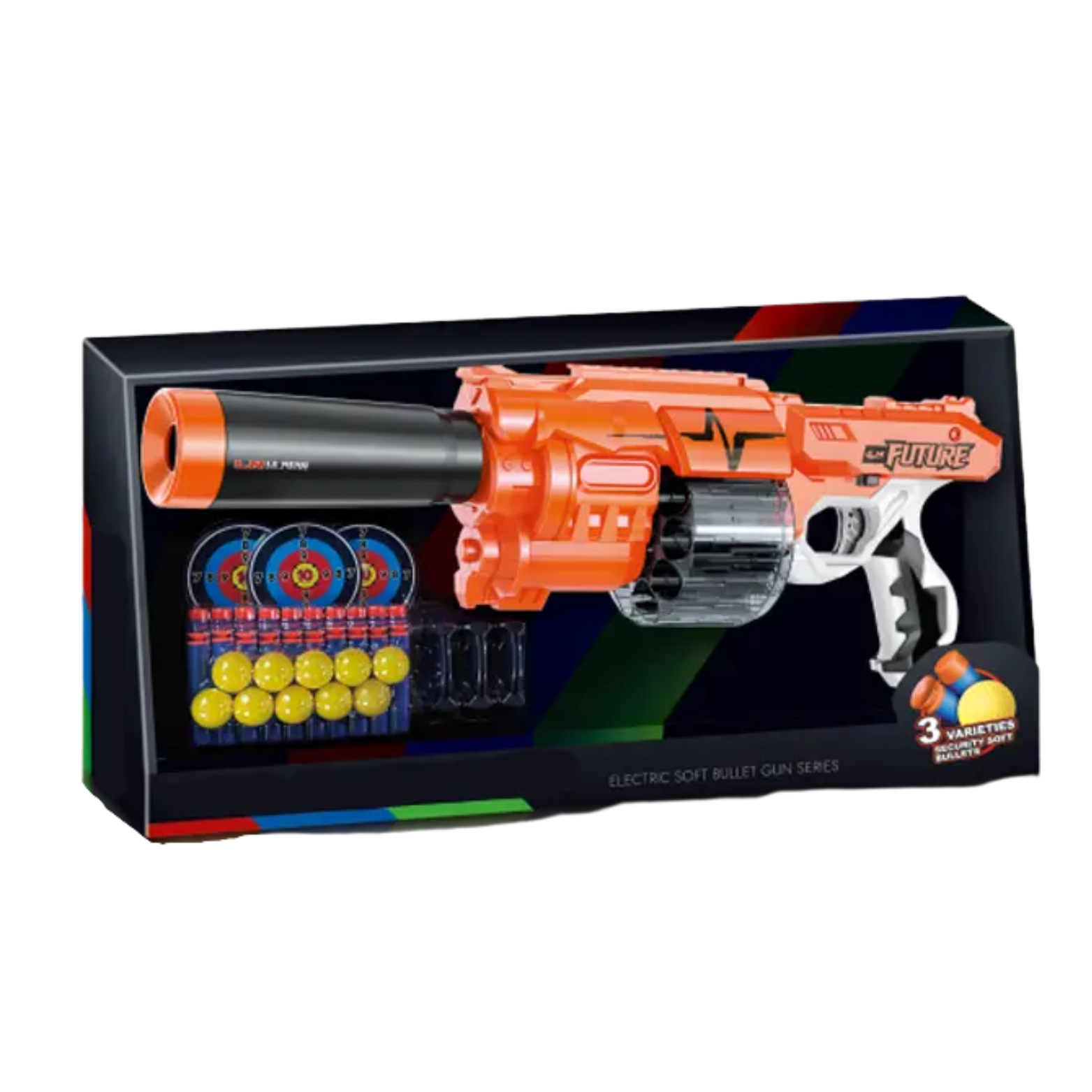 Konstrukcja pistoletu jest bezpieczna i stworzona z myślą o dzieciach. Posiada tłumik, który można zamontować, otwierany i zamykany magazynek, a także trzy rodzaje kulek, które są całkowicie bezpieczne i nie powodują uszkodzeń.