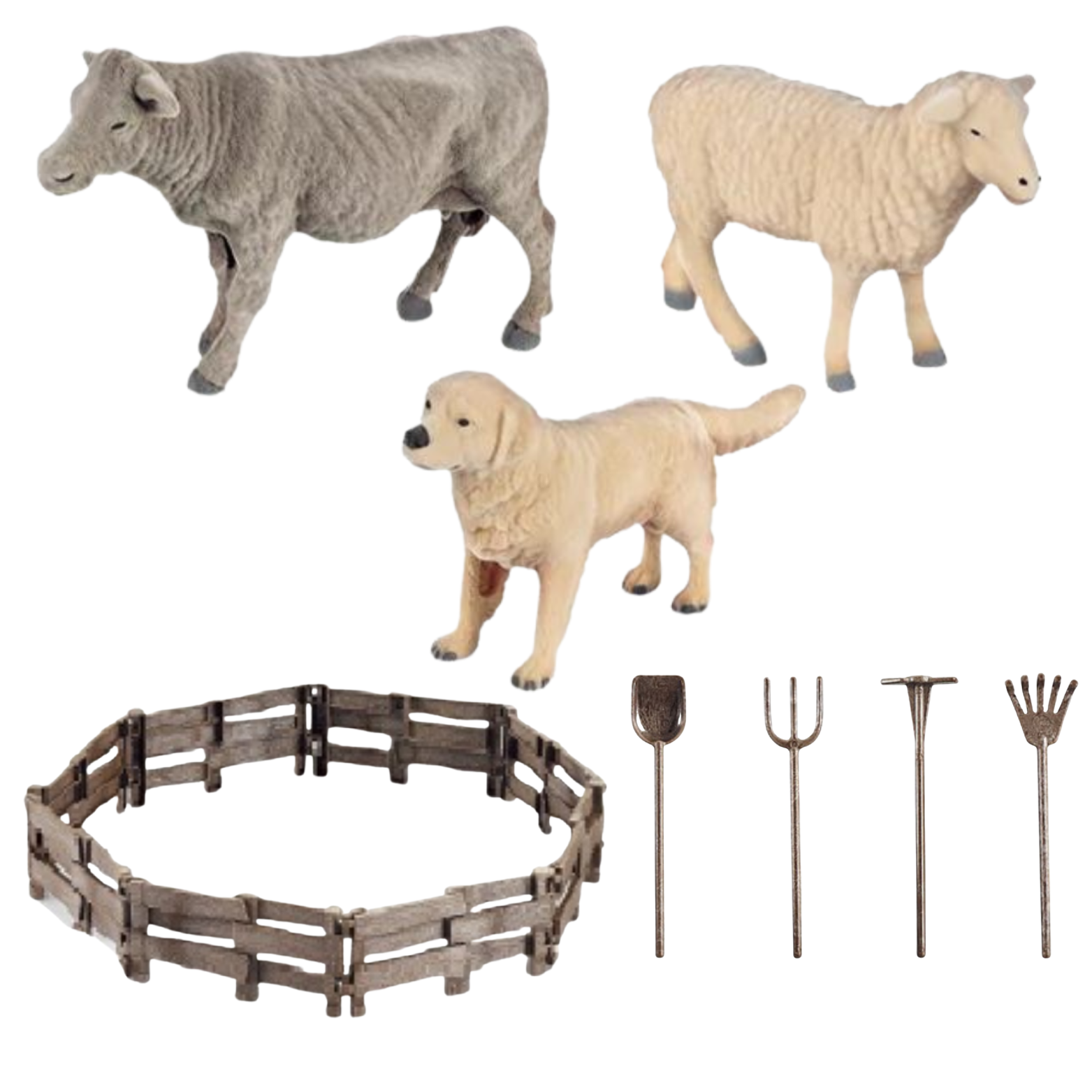 Zestaw zawiera urocze zwierzątka, takie jak krówka, owieczka i piesek, które można karmić i opiekować się nimi. Ponadto, rolnik i gospodyni, wraz z pełnym zestawem akcesoriów, pozwalają na odgrywanie ról i tworzenie realistycznych scenek.
