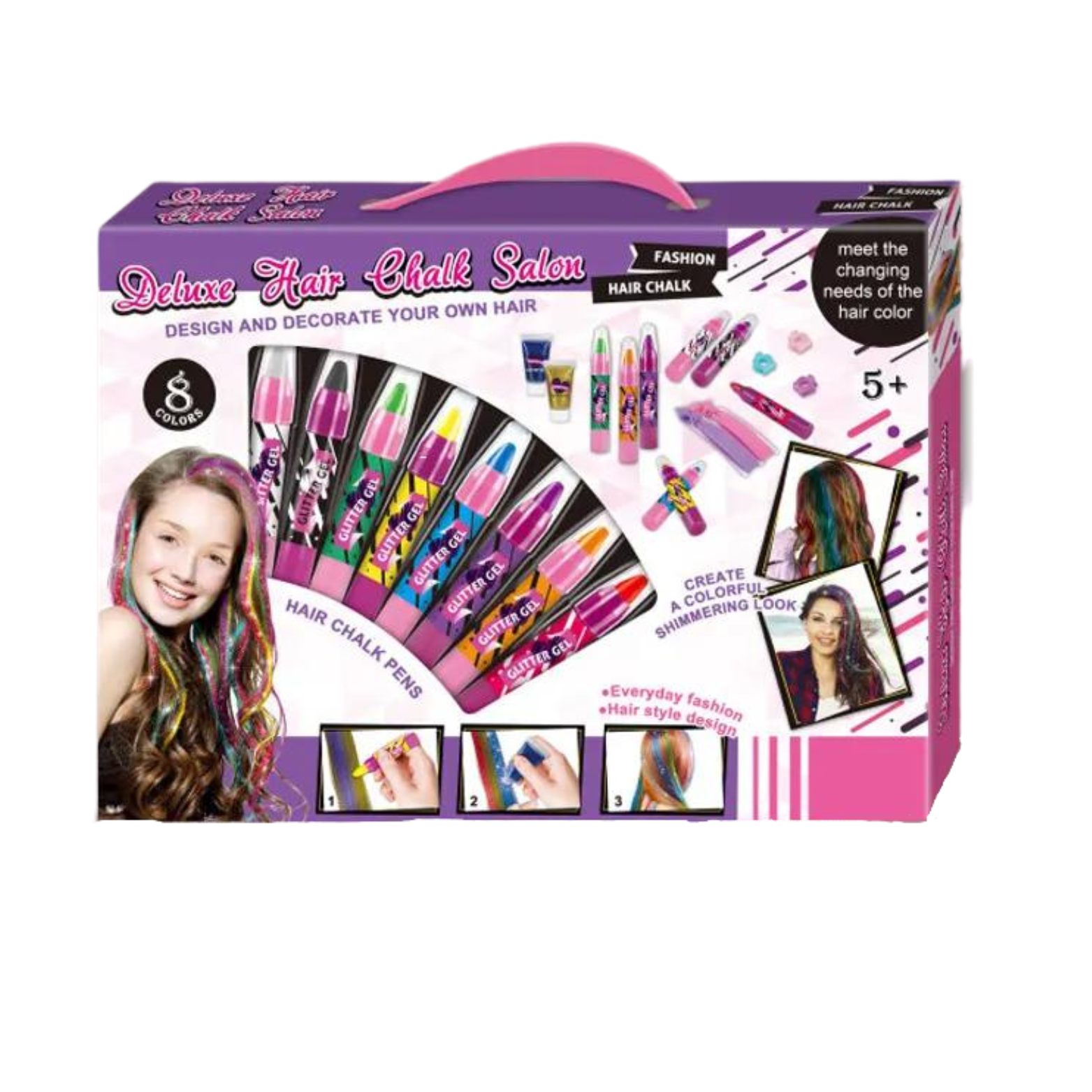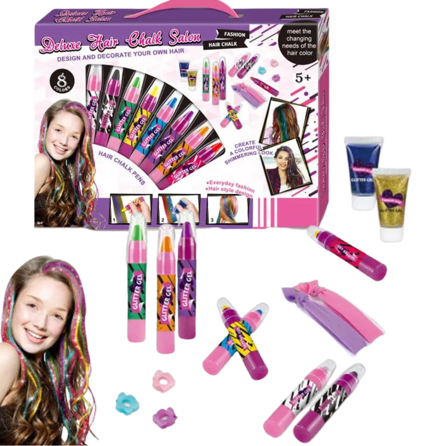 Ten zestaw to również doskonały prezent urodzinowy dla małych fashionistek. Możesz zorganizować przyjęcie z tematem kolorowych włosów i pozwolić dzieciom pokolorować sobie fryzury na specjalną okazję.