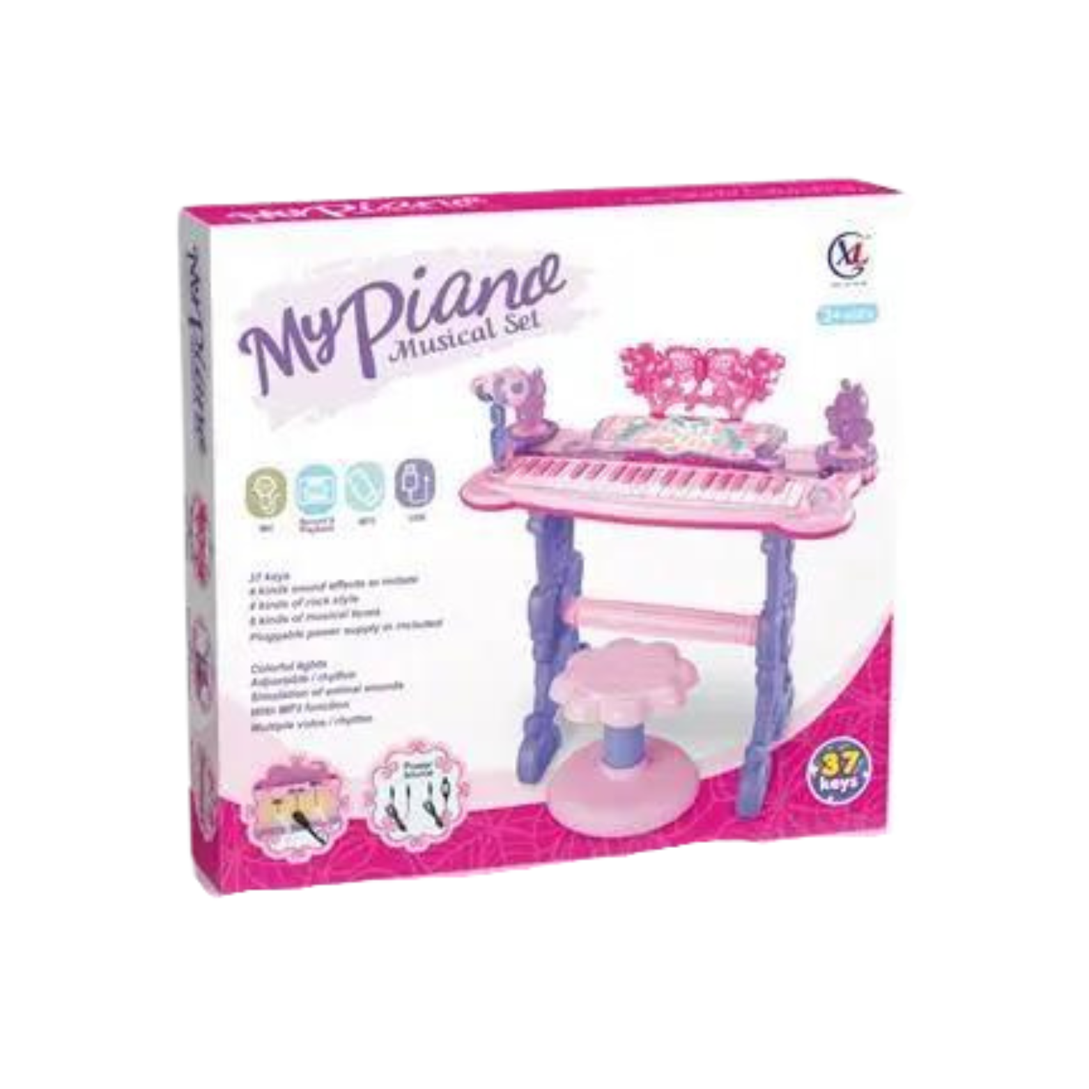 Pianino posiada praktyczny stojak muzyczny, na którym dziecko może umieścić nuty lub inne materiały muzyczne. Funkcja nagrywania pozwala dziecku utrwalać swoje muzyczne dokonania, a późniejsze odtwarzanie umożliwia ponowne przeżycie magicznych chwil. Instrument wyposażony jest w oświetlenie, które nie tylko dodaje efektów wizualnych, ale także zachęca do kreatywności podczas sesji muzycznych.