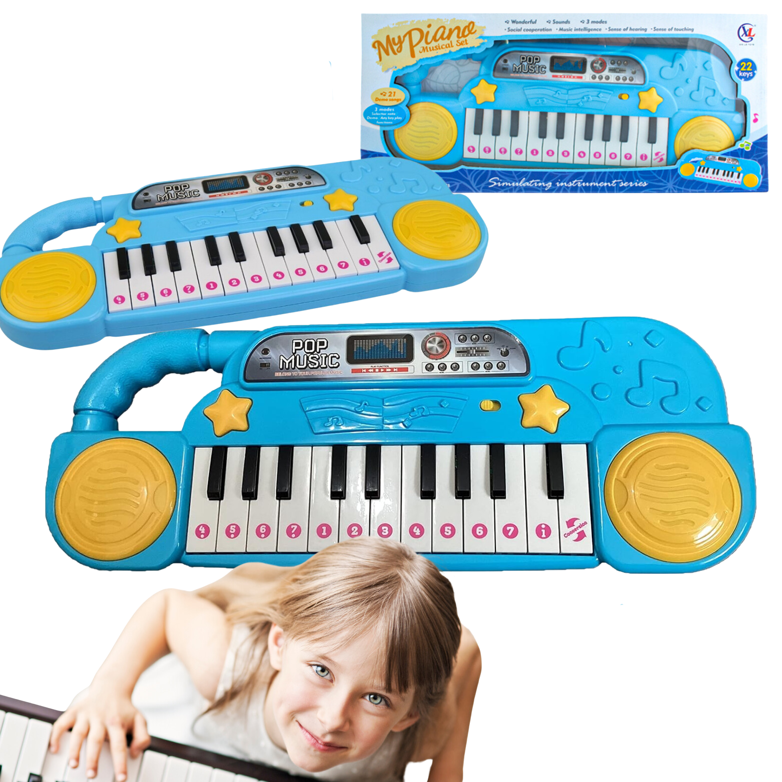 Instrument ten posiada 3 tryby, które urozmaicą każdą grę. 21 wbudowanych kompozycji pozwoli dziecku zanurzyć się w świecie muzyki. Każdy klawisz fortepianu to osobna melodia, umożliwiająca odkrywanie różnorodnych dźwięków. Tryb pianina pozwoli na kreatywne wyrażanie siebie. Każdy klawisz to inny dźwięk, pozwalając dziecku odkryć tajniki melodyki i rytmiki.