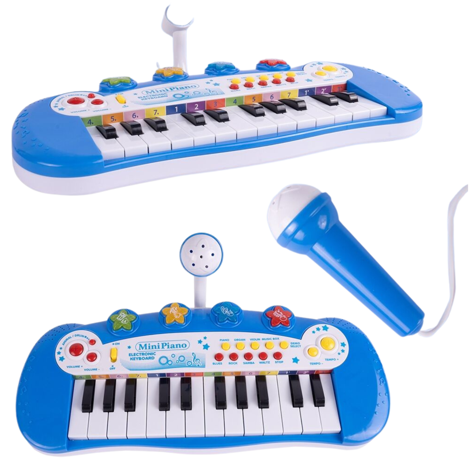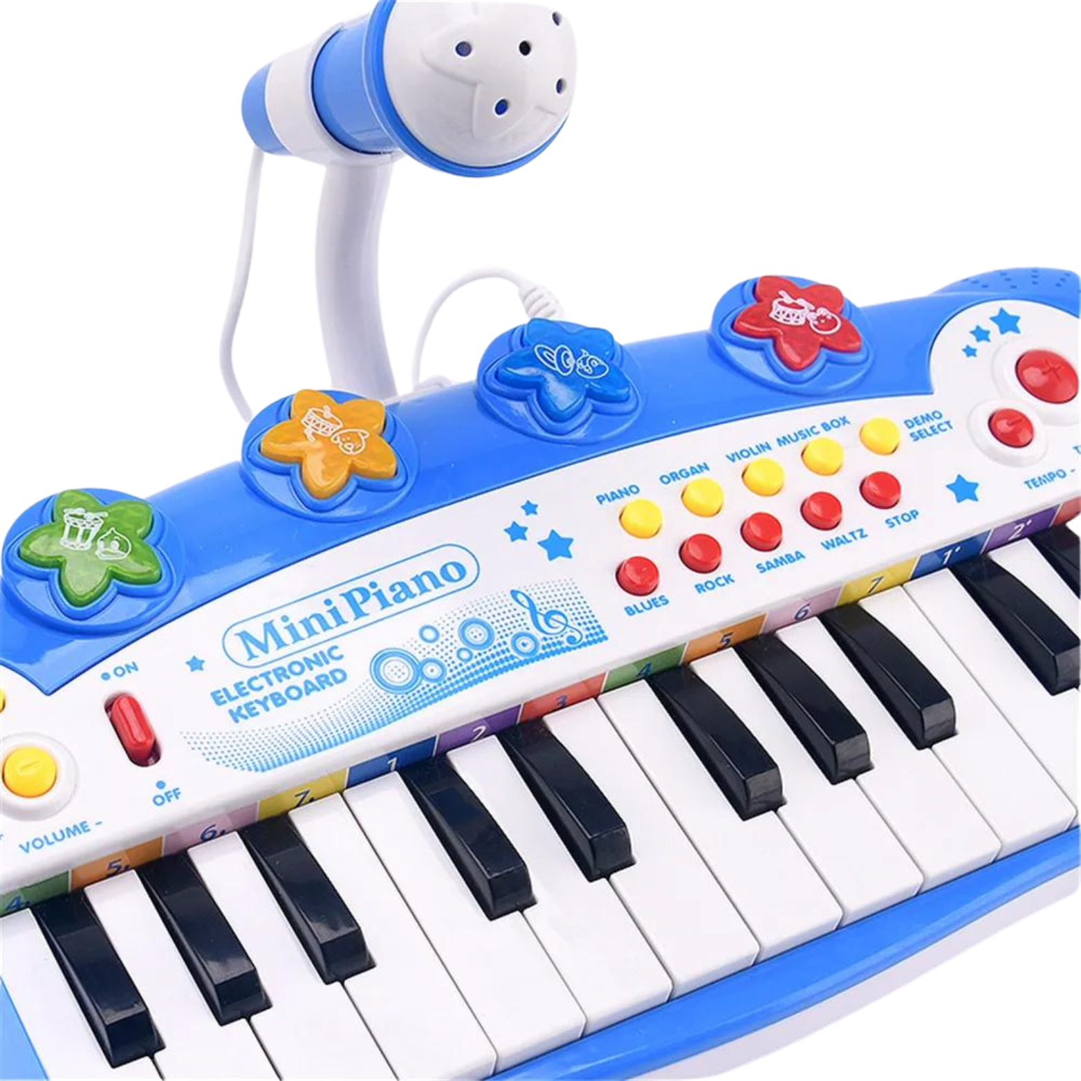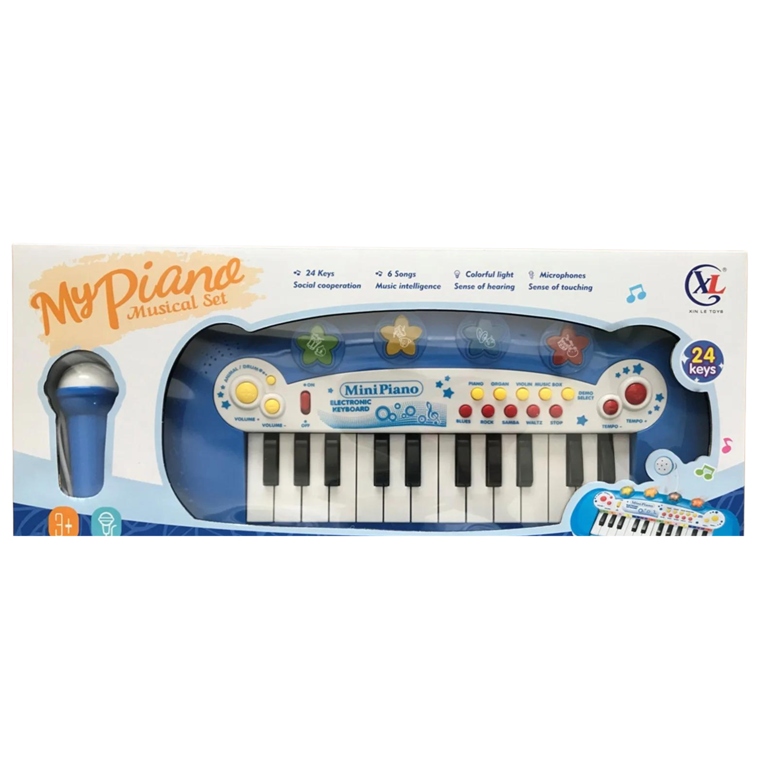 Klasyczne pianinko z 24 klawiszami wprowadza dzieci w fascynujący świat muzyki, pozwalając im eksperymentować z różnymi dźwiękami. Organy oferują nie tylko dźwięki pianina, ale także różnorodnych efektów dźwiękowych. Maluchy cieszyć się mogą odgłosami zwierzątek, a także dźwiękami instrumentów.