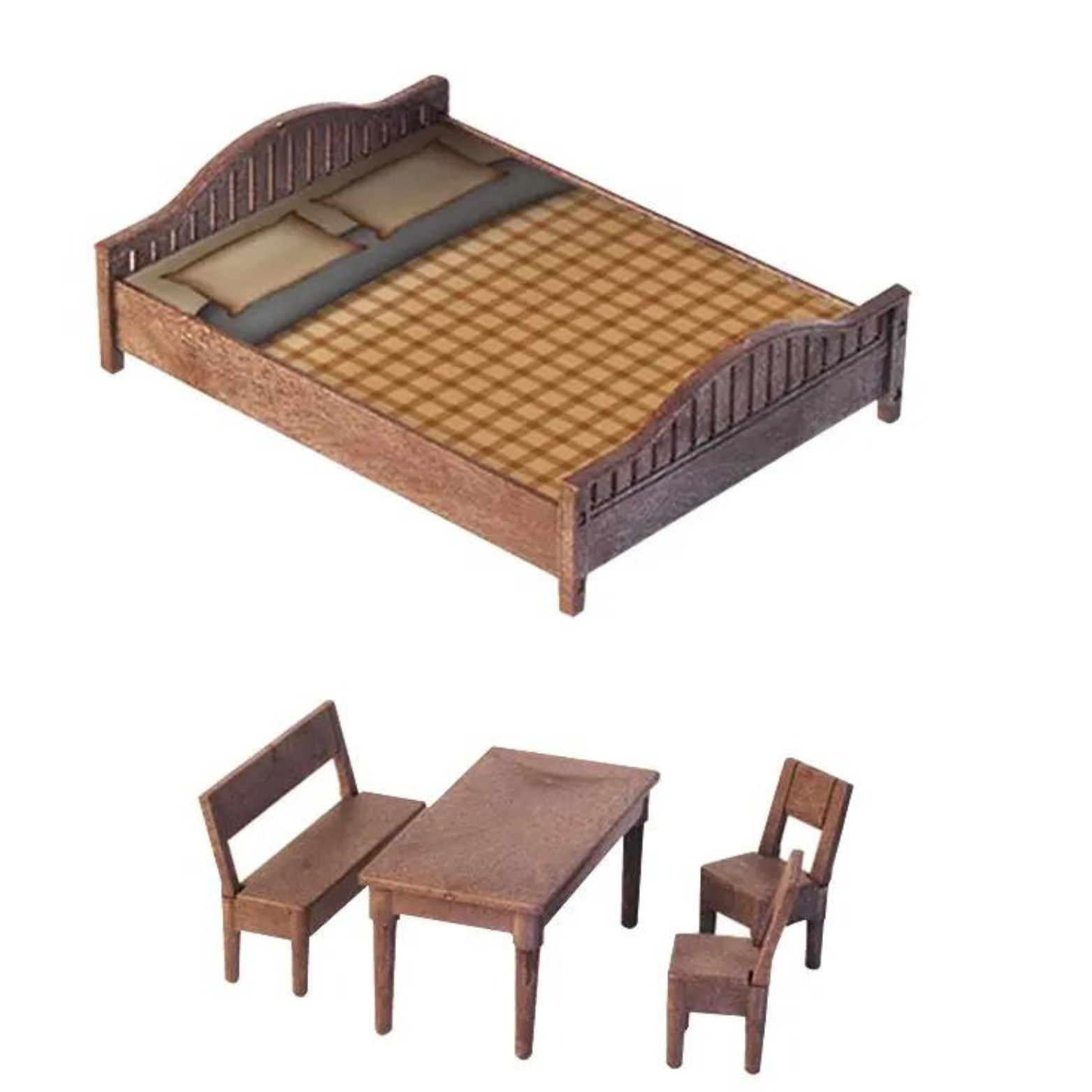 Figurki różnych zwierząt można karmić, zabawiać i troszczyć się o nie na swojej farmie. Ponadto w zestawie znajdują się meble do domku rolnika, takie jak łóżko, krzesła, ławka i stół, a także akcesoria kuchenne.