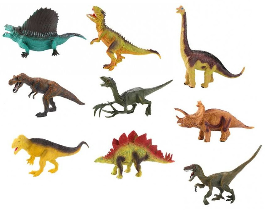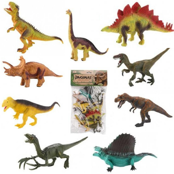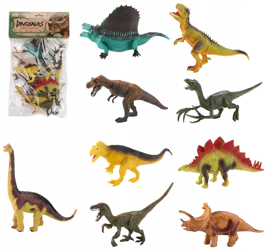 - Zawartość zestawu: 9 dinozaurów różnych gatunków.