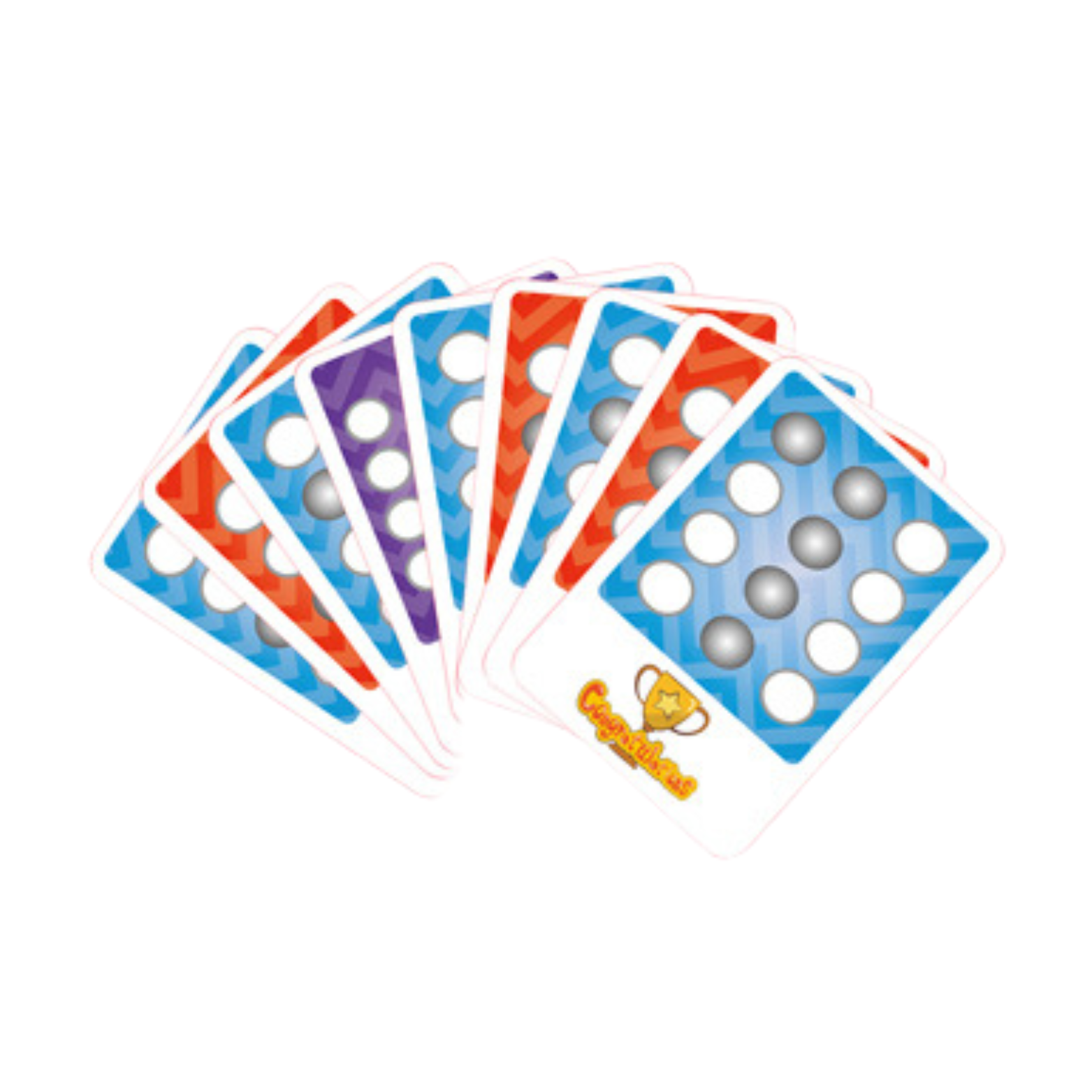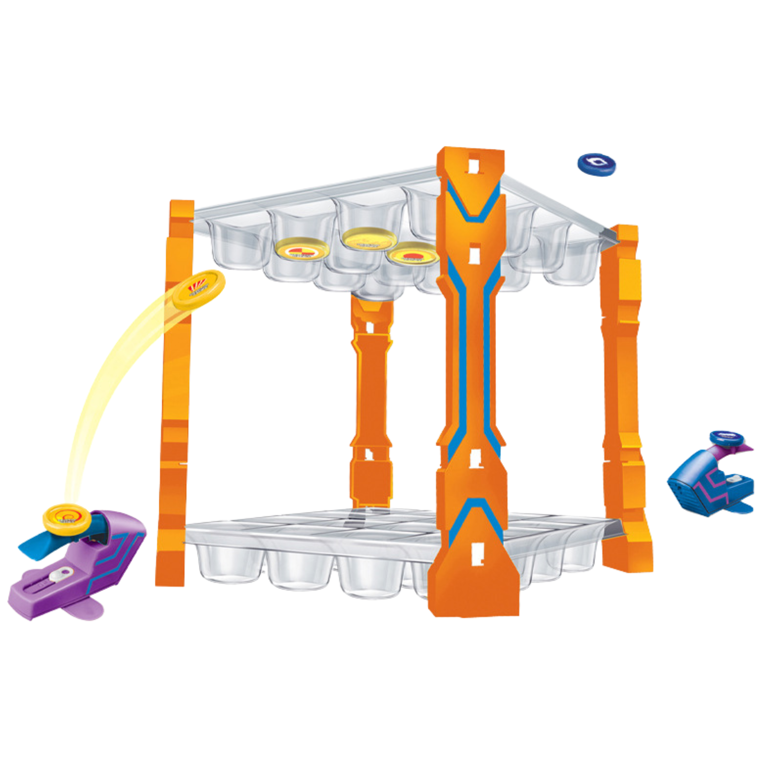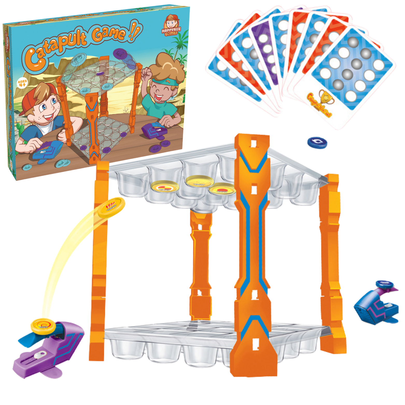 Gra składa się z kolorowej konstrukcji z otworami oraz zestawu żetonów. Celem gry jest rzucanie żetonami poprzez katapultę na górną planszę w taki sposób, aby uzyskać  wzór widoczny na karcie, którą wybierają gracze. Ta kreatywna zabawa to nie tylko sposób na dobrą zabawę, ale także doskonała okazja do rozwijania umiejętności dzieci. Rzucanie piłeczkami wymaga precyzji, koordynacji ruchowej i zręczności, co sprzyja rozwojowi motoryki małej u najmłodszych graczy.
