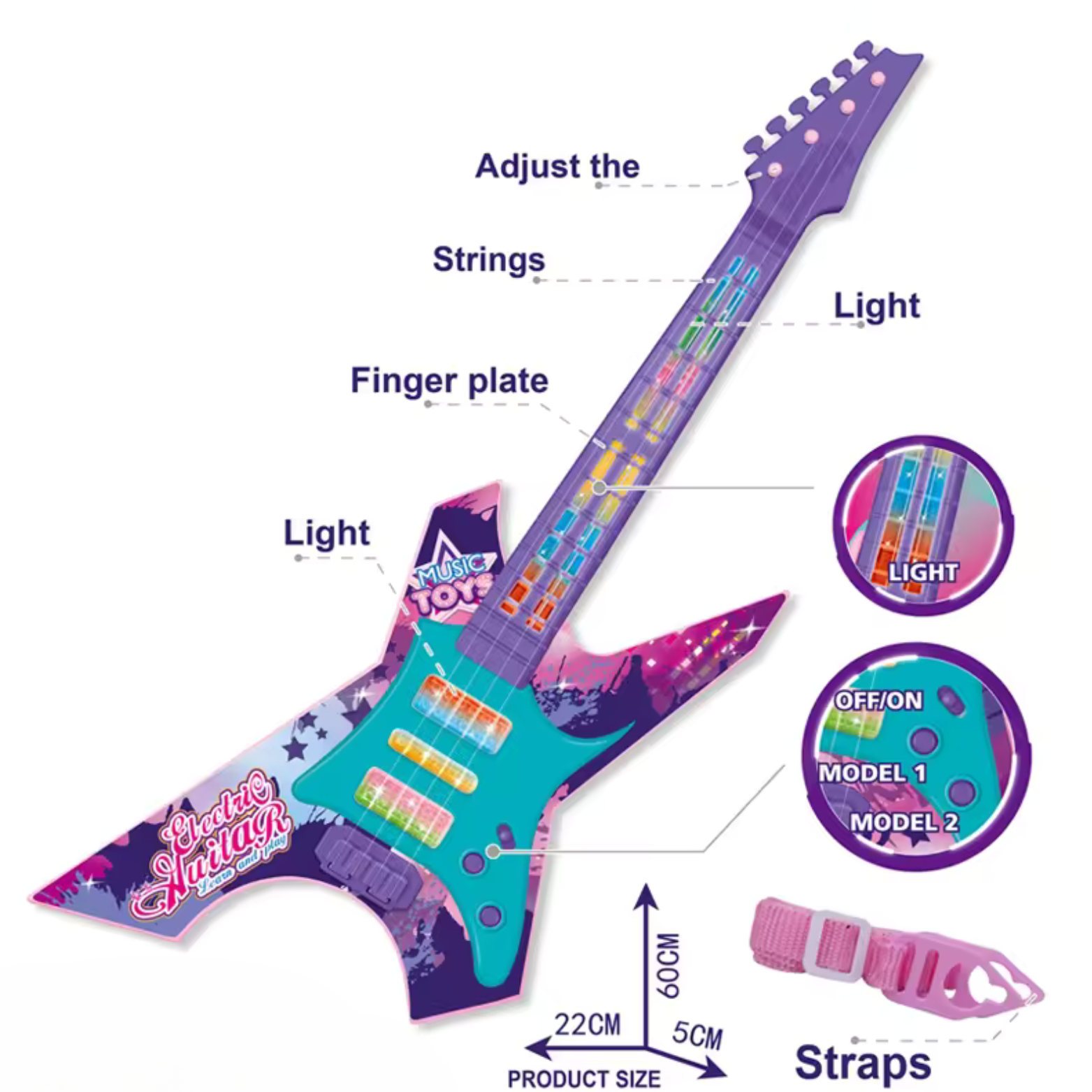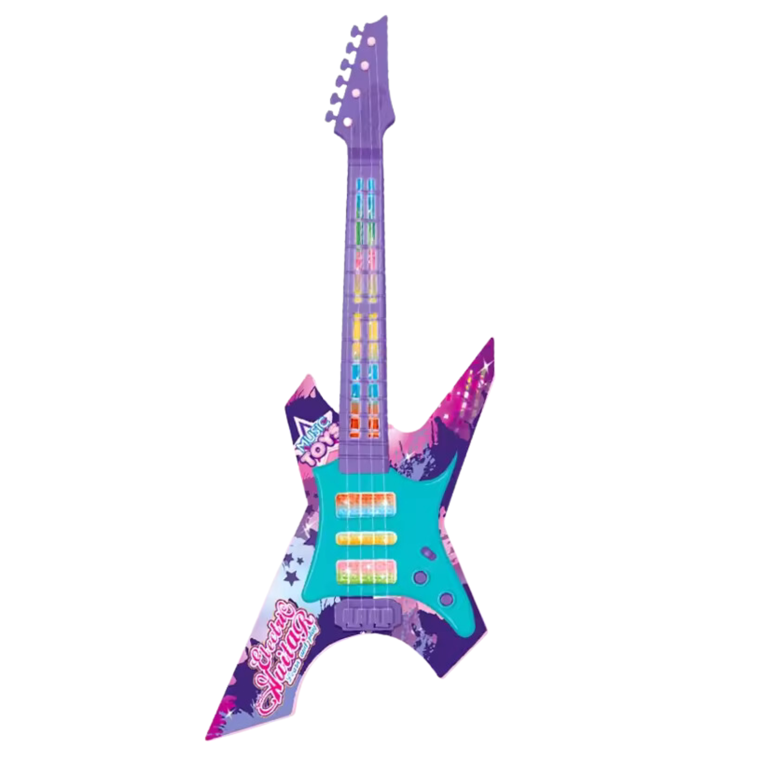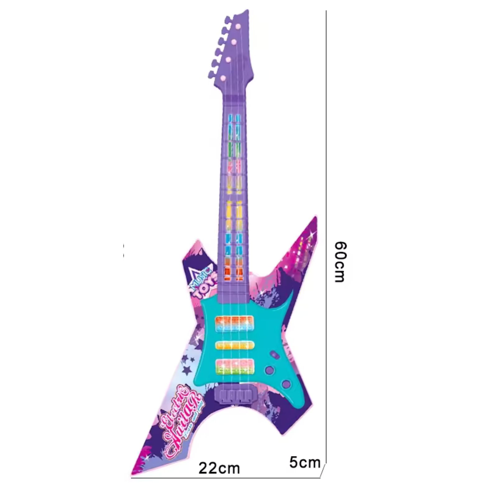 Kolorowa i Przyjazna Dla Dzieci: Nasza gitara jest wykonana z bezpiecznych materiałów, a jej kolorowy design przyciąga uwagę i zachęca do zabawy. To doskonały sposób na rozwijanie zainteresowań muzycznych wśród najmłodszych.