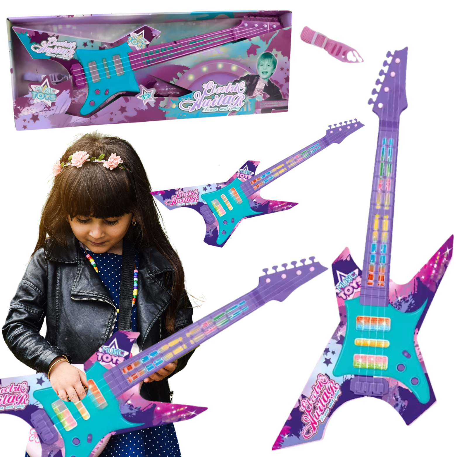Autentyczny Dźwięk: Choć przeznaczona dla dzieci, nasza elektryczna gitara zapewnia autentyczne brzmienie, co pozwala maluchom poczuć się jak prawdziwi rockowi gwiazdorzy.