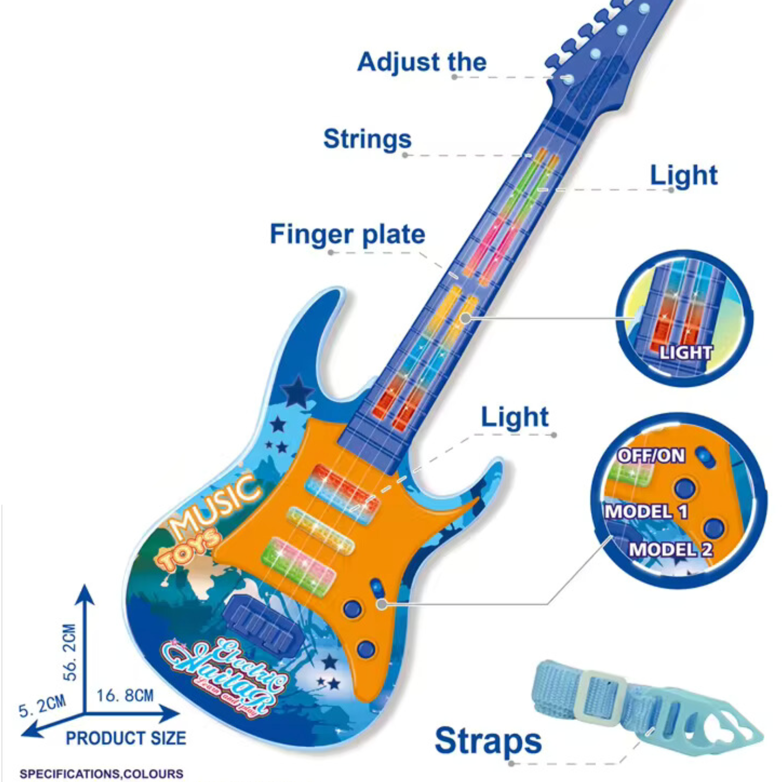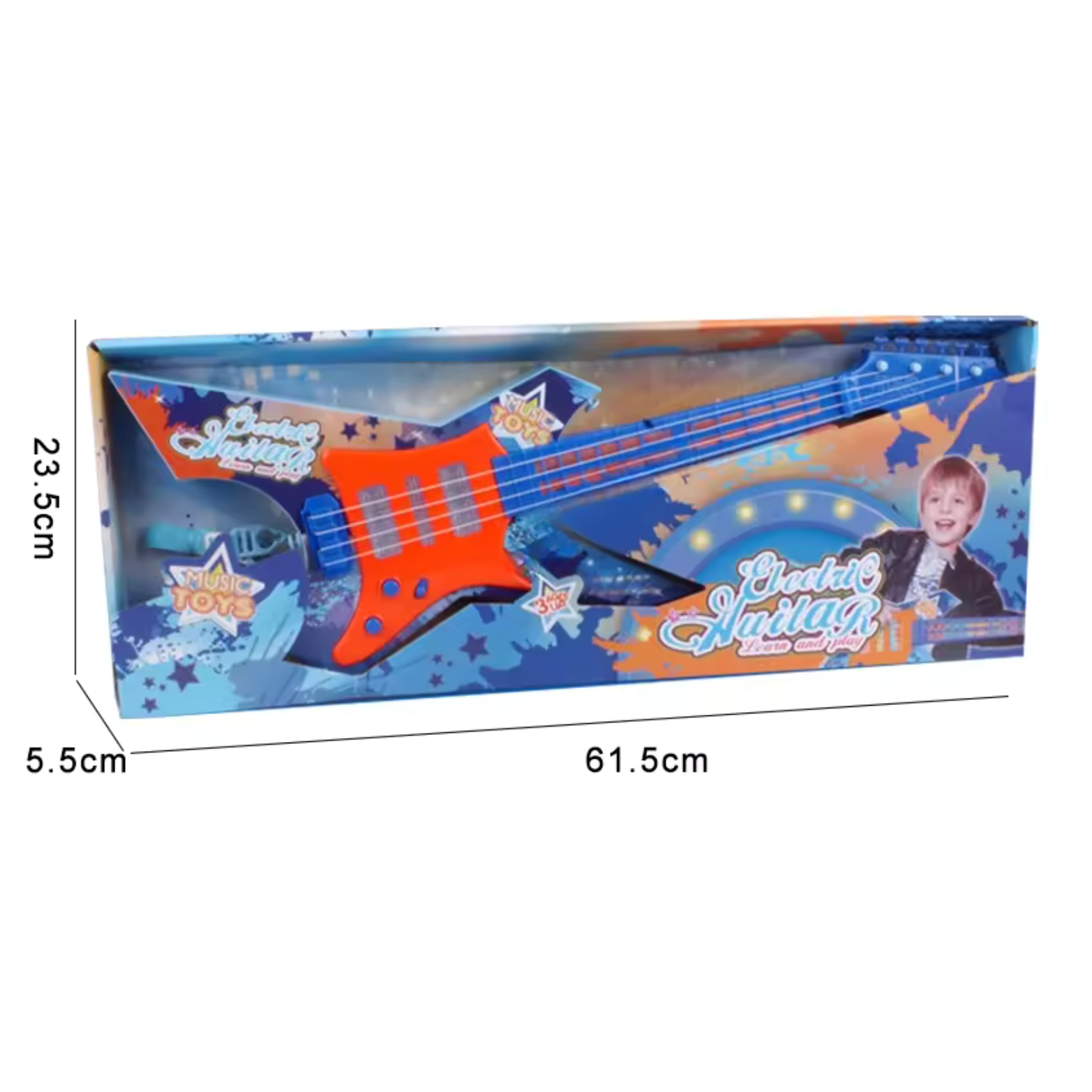 Kolorowa i Przyjazna Dla Dzieci: Nasza gitara jest wykonana z bezpiecznych materiałów, a jej kolorowy design przyciąga uwagę i zachęca do zabawy. To doskonały sposób na rozwijanie zainteresowań muzycznych wśród najmłodszych.