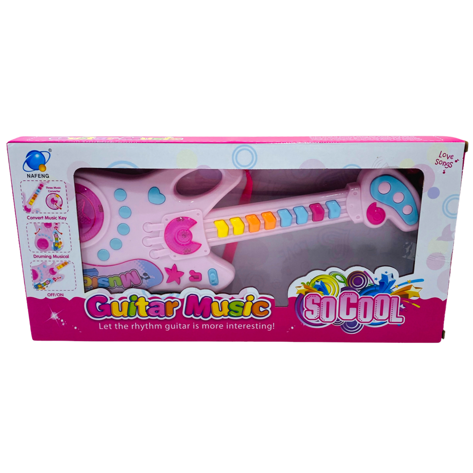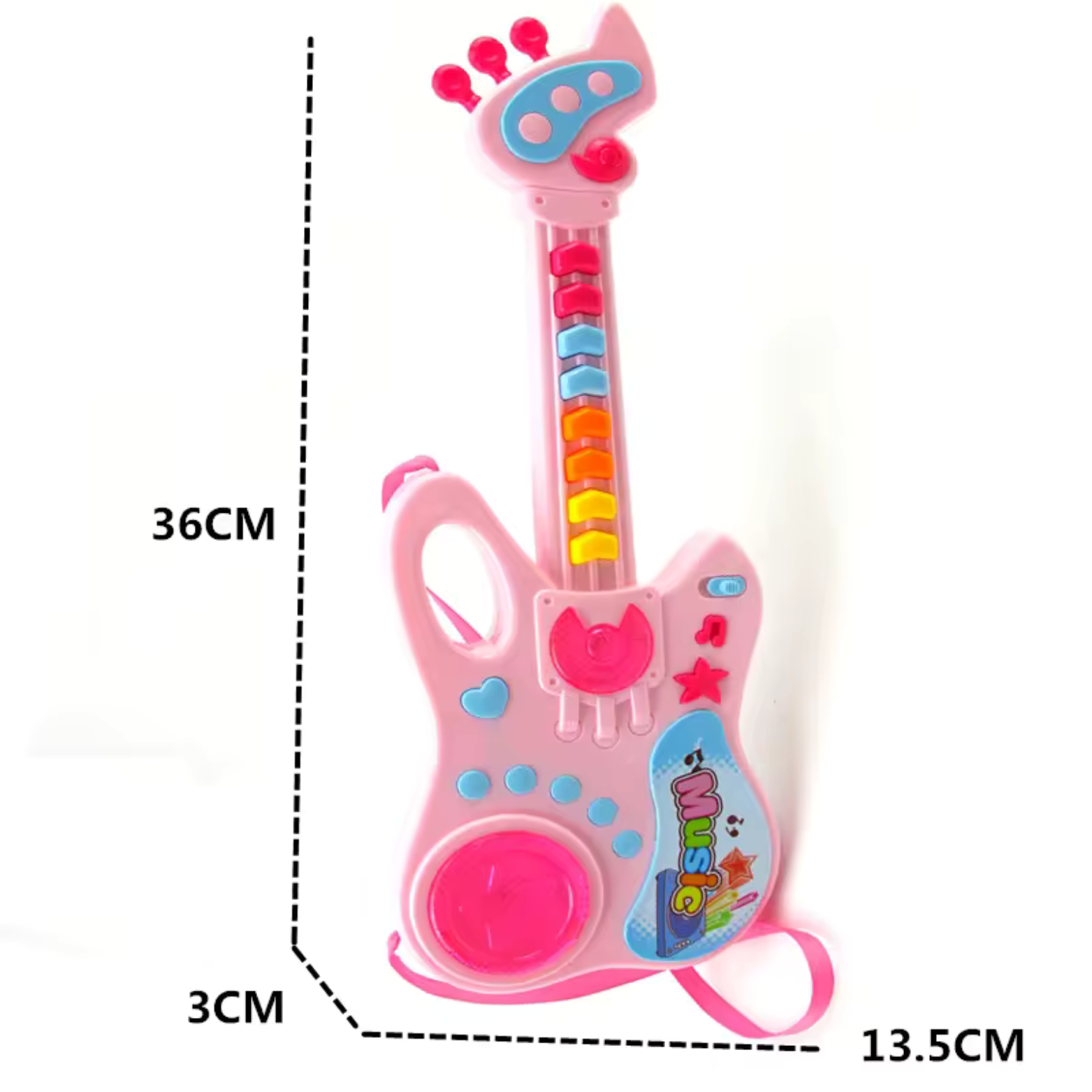 Design: atrakcyjny design i fascynujące efekty świetlne przyciągają uwagę każdego malucha, dostarczając mu mnóstwo radości i kreatywnej zabawy podczas grania na instrumencie. Atrakcyjna wizualnie gitara będzie również pięknie prezentować się w dziecięcym pokoju.
