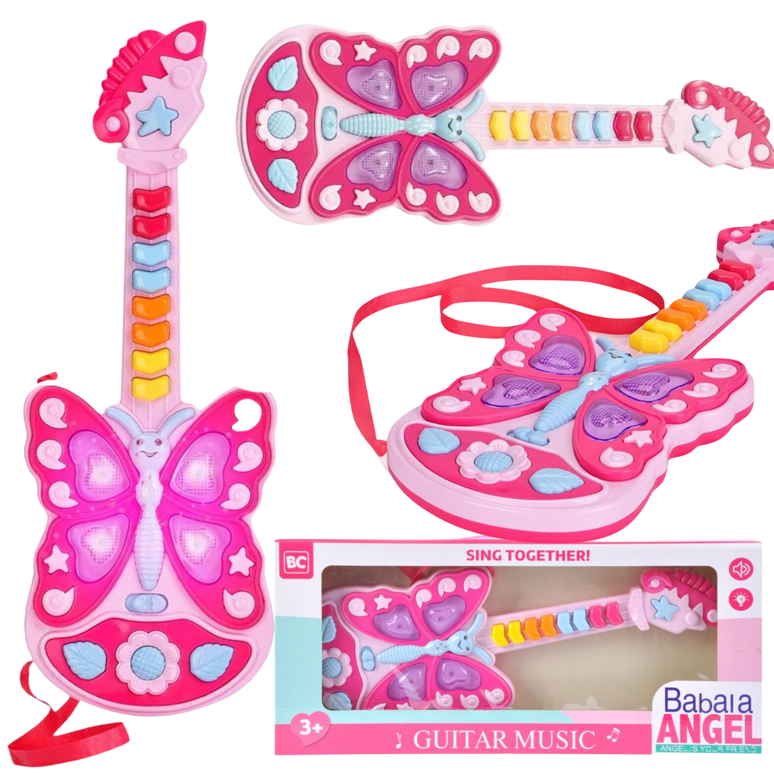 Gitara Interaktywna Dla Dzieci Efekty Świetlne Motylek Instrument Muzyczny