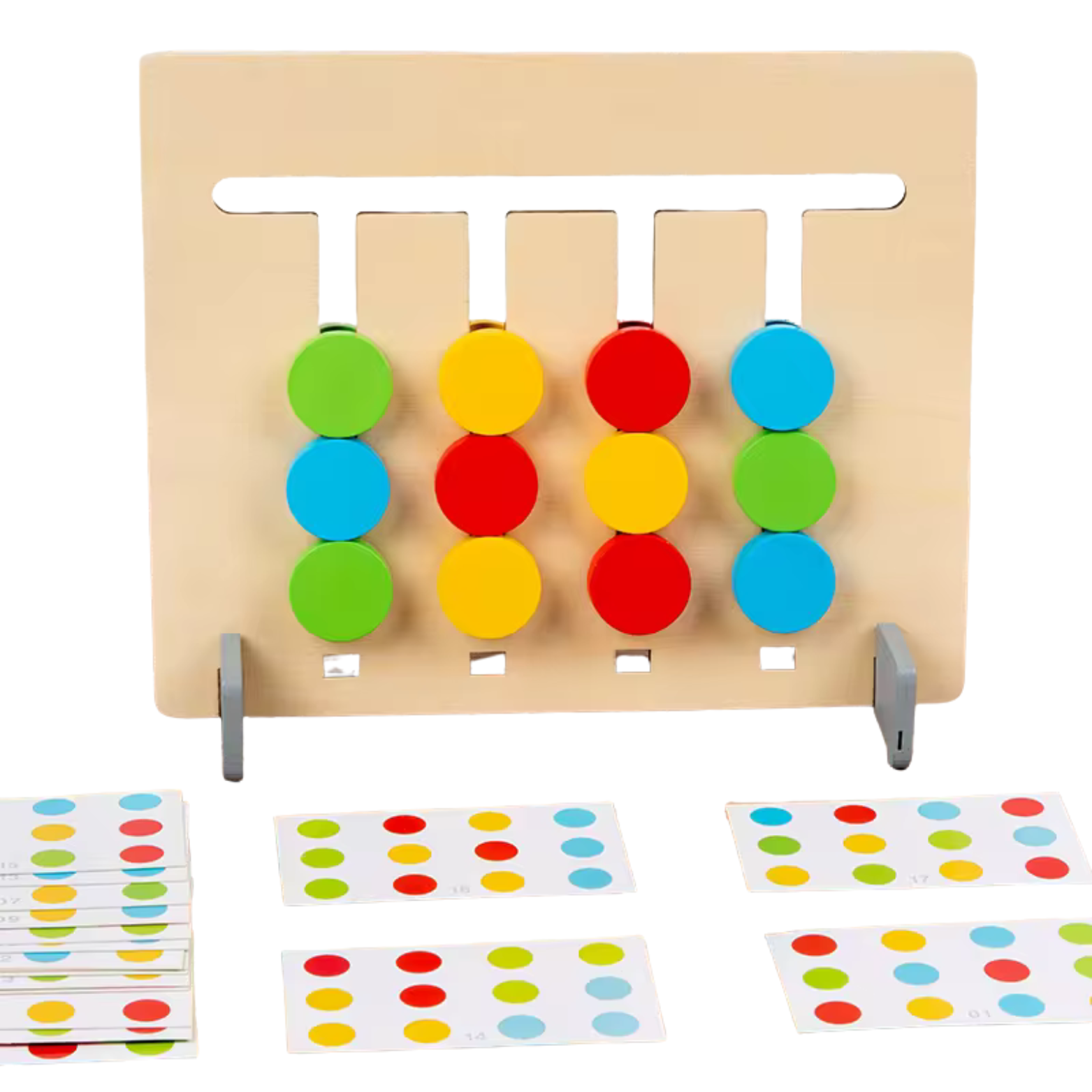 Zasady gry: zabawa polega na ułożeniu wszystkich czterech rzędów klocków, w taki sam sposób jak pokazane jest na wylosowanej wcześniej karcie. Jest to świetna okazja do rozwijania zdolności motorycznych i umiejętności myślenia przestrzennego.