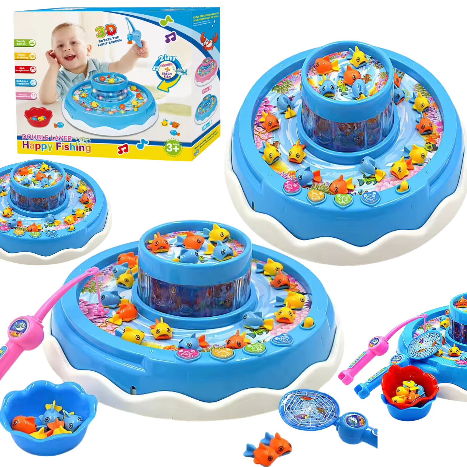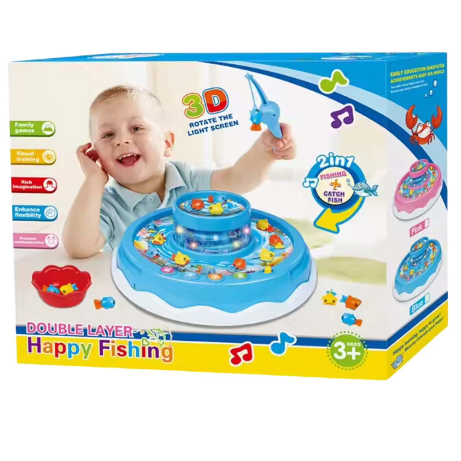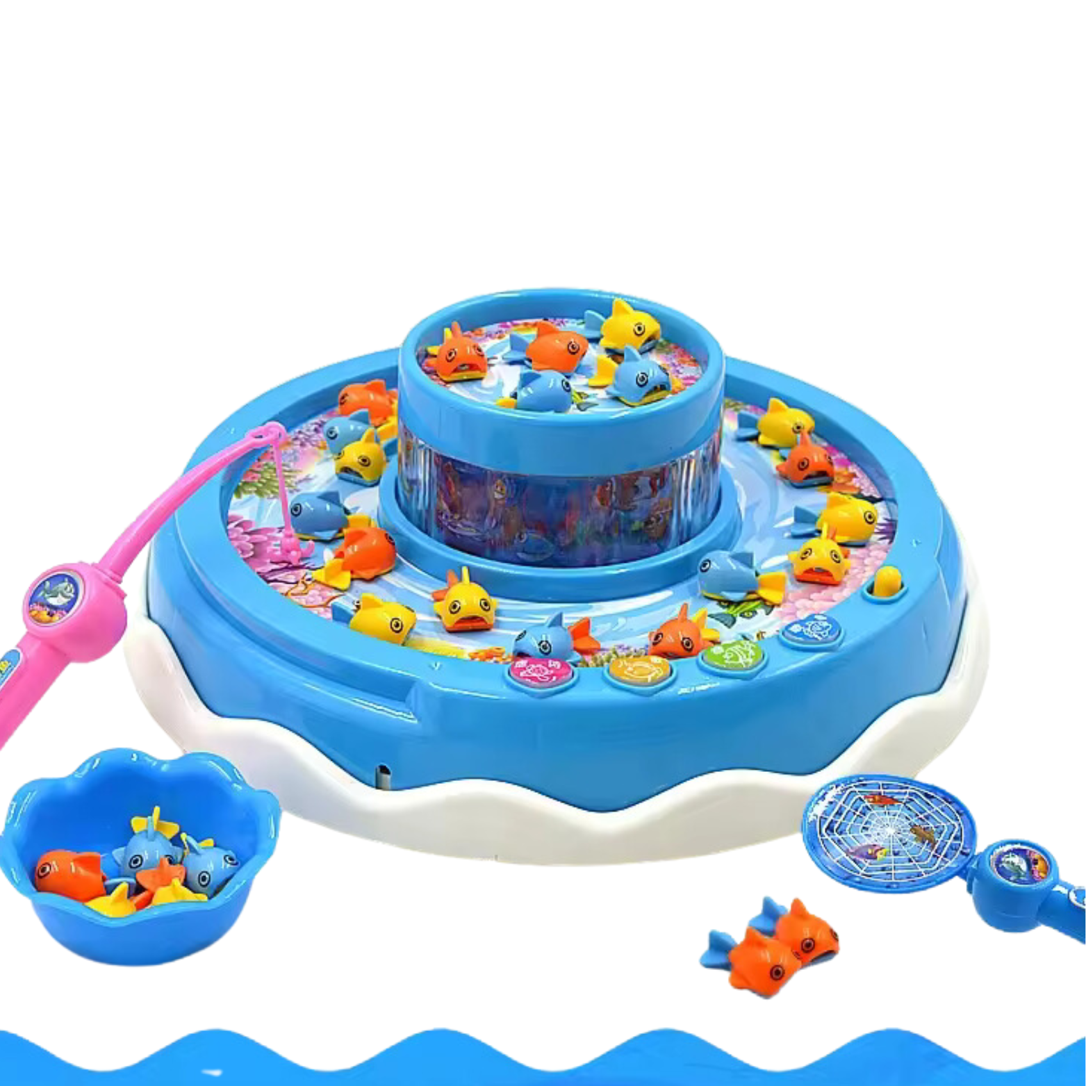 Interaktywny design: Zestaw składa się z obracającej się podstawy z magnetycznymi rybkami oraz wędkami, co zapewnia dynamiczną i ekscytującą zabawę dla dzieci. Dodatkowo, podstawa wydaje dźwięki muzyczne oraz efekty dźwiękowe co dodaje emocji i radości do rozgrywki.