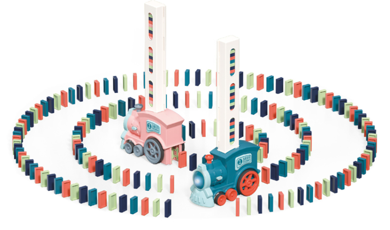 Lokomotywa DOMINO to fantastyczna zabawka, która uczy i bawi! Ciuchcia w szybki sposób rozkłada klocki na trasie. Gdy klocki zostaną ułożone jednym dotknięciem przewracamy pierwszego klocka. Następnie obserwujemy jak każdy następny klocek zostaje przewrócony przez poprzedni.