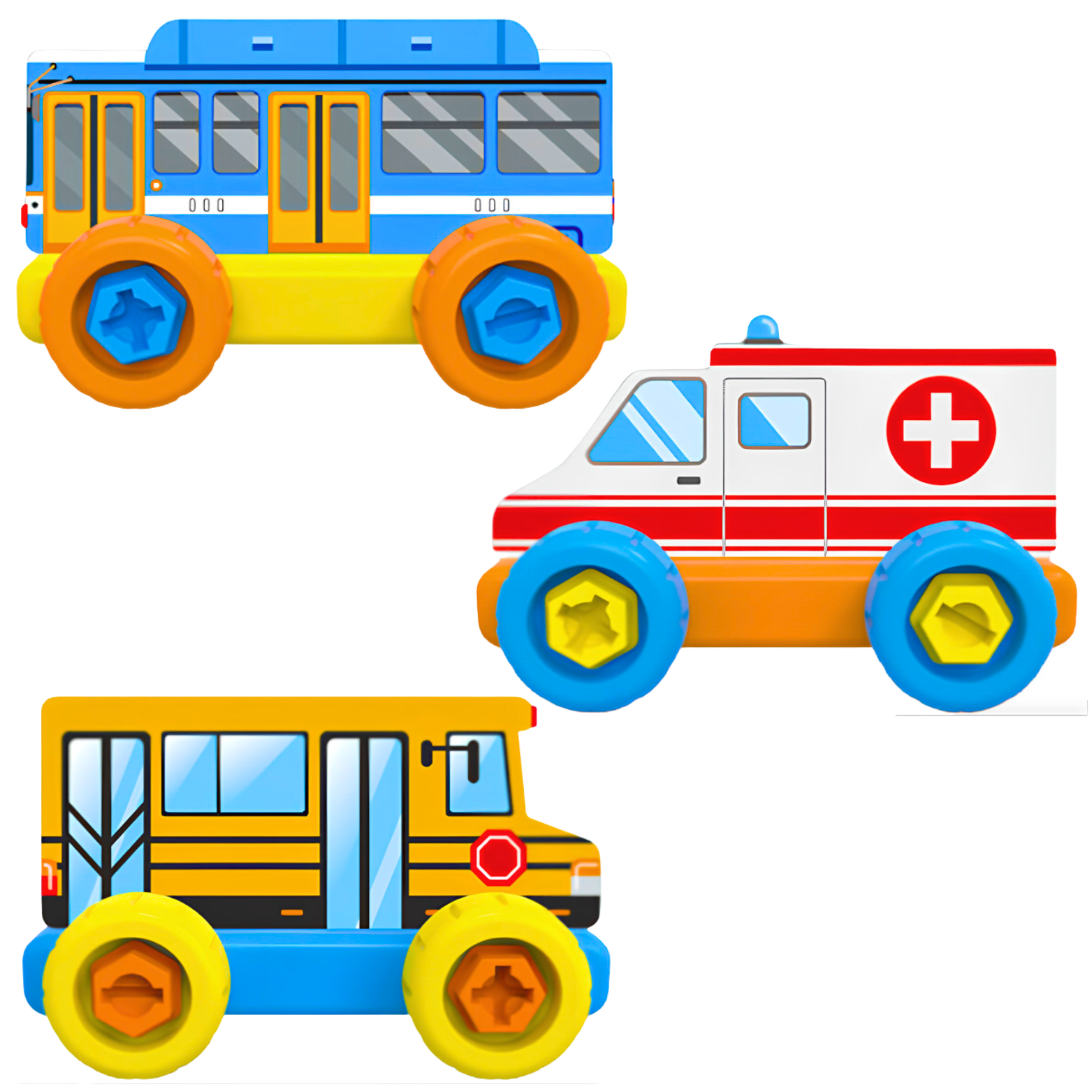 - 3 elementy w kształcie pojazdów