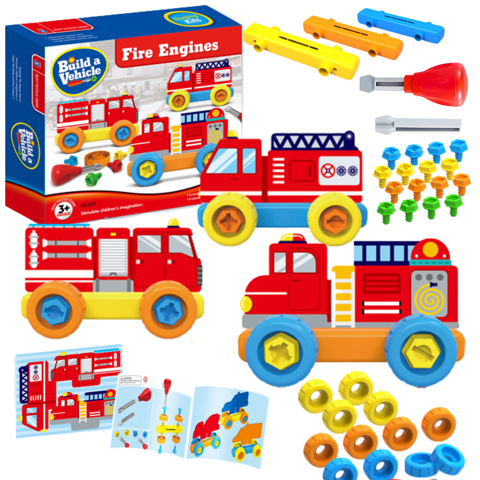 Prawdziwe montowanie: W zestawie znajduje się śrubokręt z wymiennymi końcówkami oraz komplet plastikowych śrubek, dzięki którym nawet najmłodsi będą mogli poznać świat budowania. Chcąc przyłączyć koła do podstawy pojazdu, należy użyć śrubek oraz śrubokrętu. W ten sposób pociechy w bezpieczeństwie poznają świat, uczą się do czego służą konkretne przyrządy, rozwijają umiejętności kreatywne i manualne, a najważniejsze, że równocześnie wspaniale się bawią.