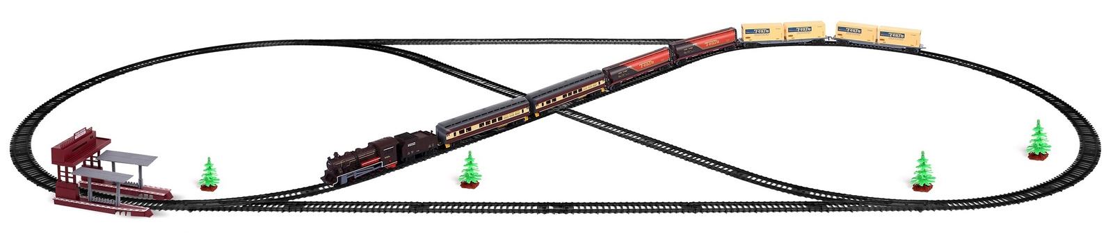 Do zestawu dołączone zostały niesamowite elementy, które uatrakcyjniają zabawę! Na trasie można postawić aż 3 DRZEWKA, a także PERON ustawiony między torami na, którym czekają pasażerowie.