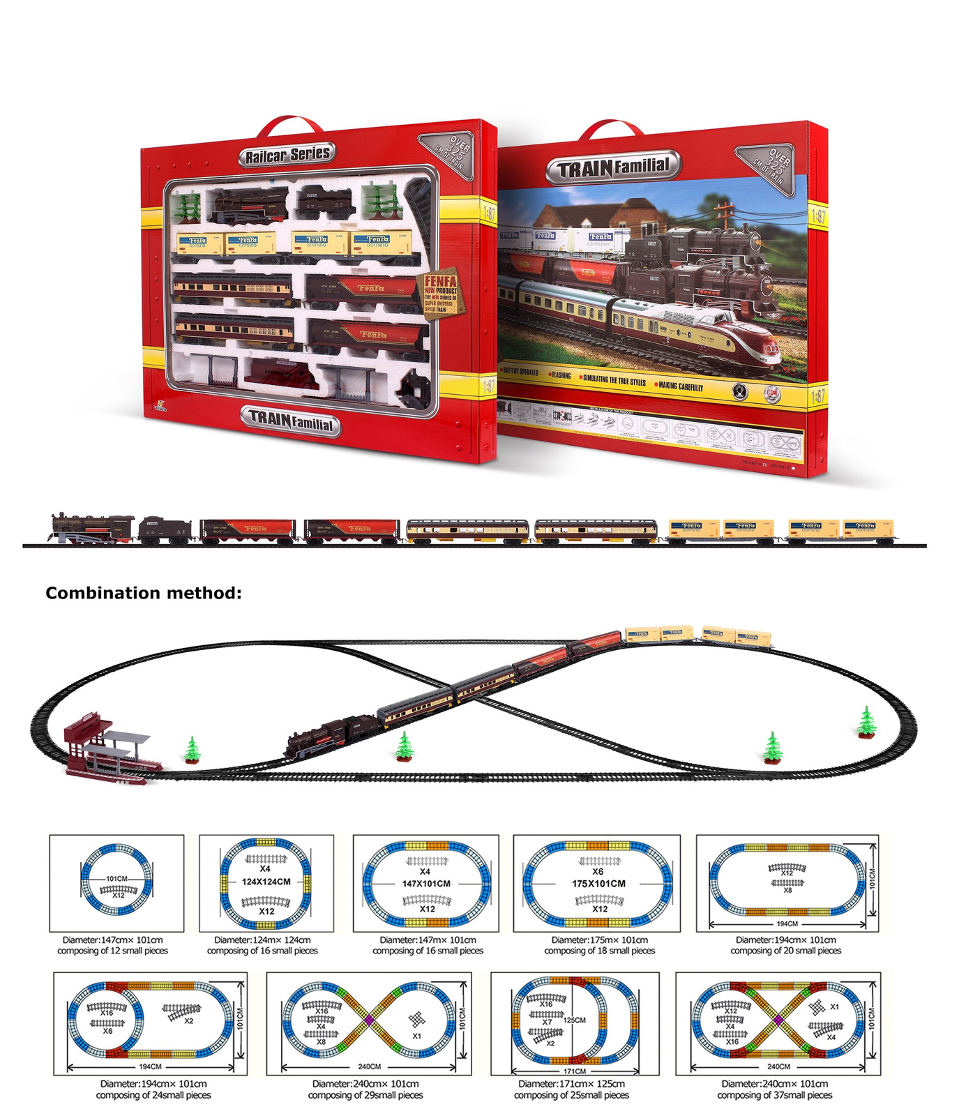 Ogromna ilość elementów toru pozwala na złożenie 9 dowolnych kombinacji o różnych wielkościach. Elementy można łatwo łączyć i rozłączać. Pociąg stabilnie się trzyma jadać po nich.