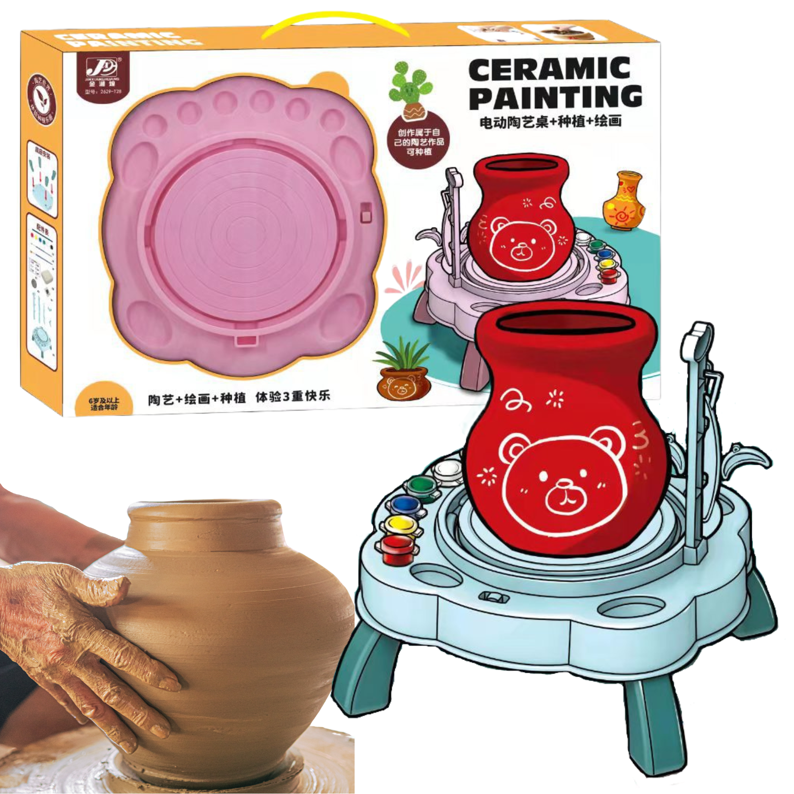 KOŁO GARNCARSKIE ZESTAW Z GLINĄ FARBAMI KREATYWNY DO ROBIENIA NACZYŃ Z GLIN