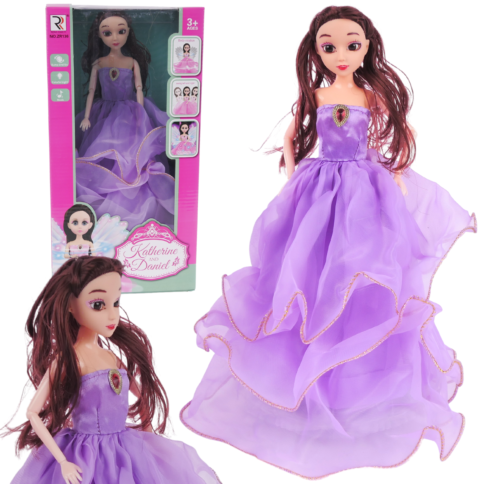 Ta lalka księżniczka to idealny prezent dla każdej dziewczynki, która marzy o swojej własnej baśniowej bohaterce. Pozwól dziecku wyruszyć w fascynującą podróż do krainy fantazji z naszą Lalką Księżniczką w fioletowej sukience z falbankami!