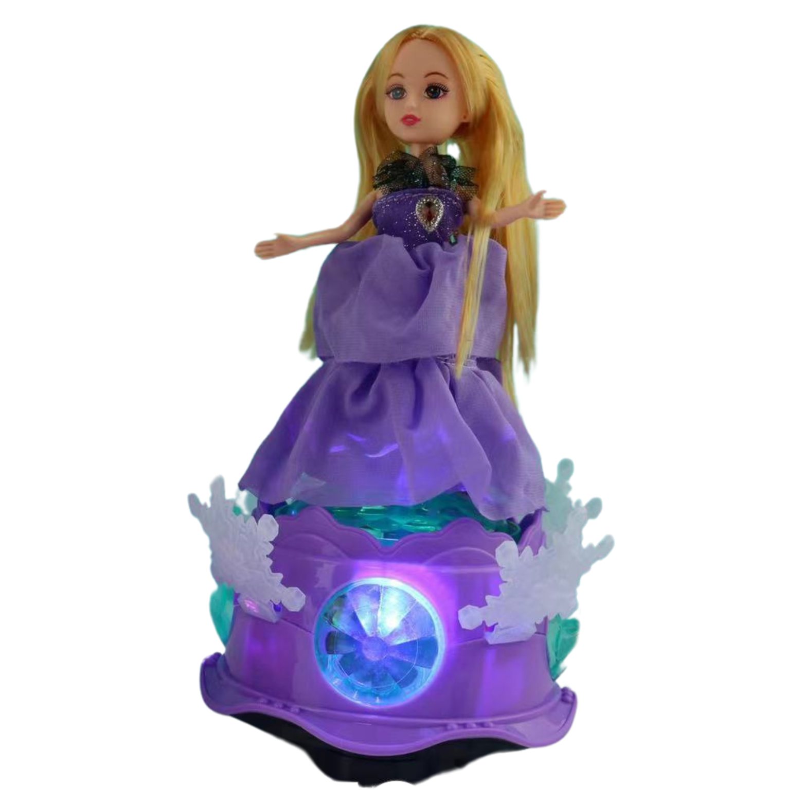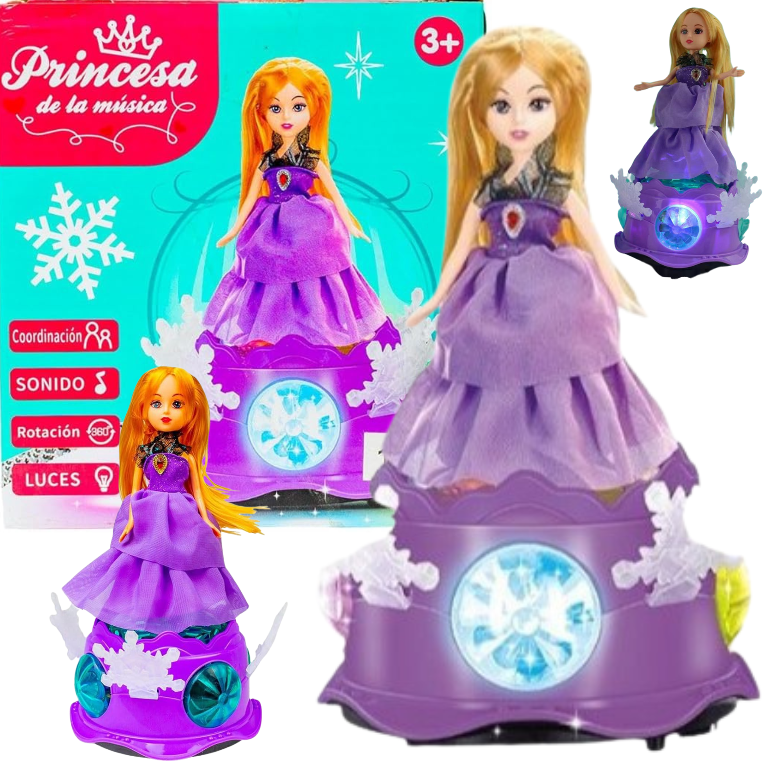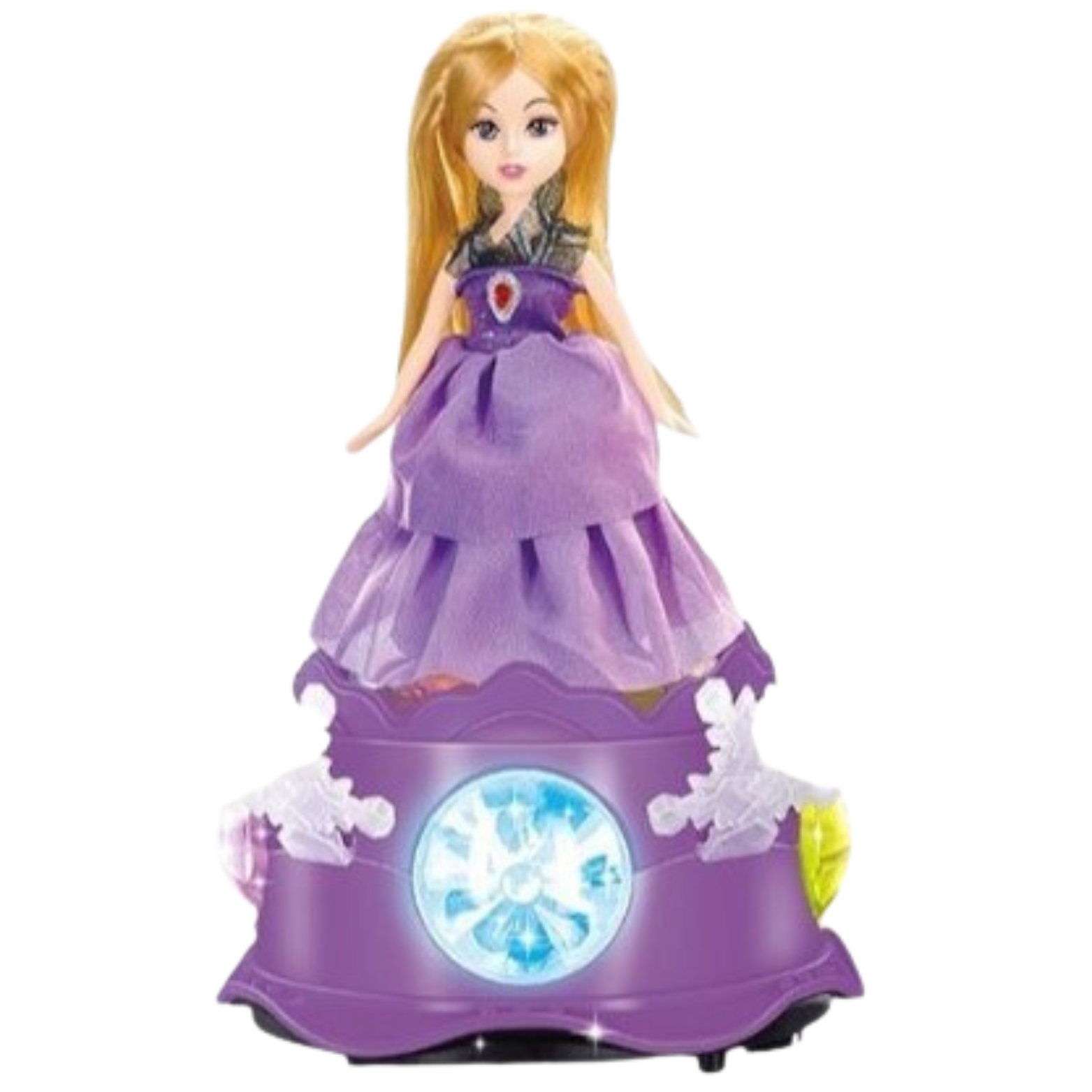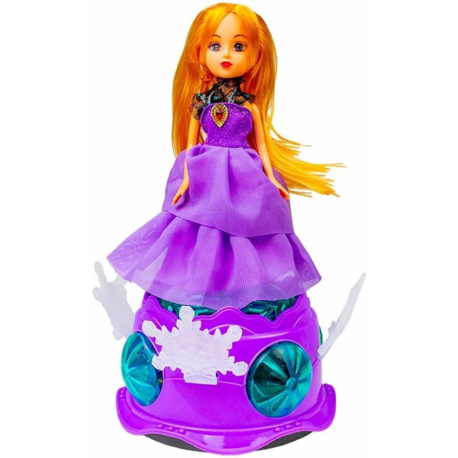 Kolorowe światełka: Lalka księżniczka wyposażona jest w kolorowe światełka, które migoczą w rytm muzyki i dodają uroku oraz magii do zabawy. Światełka stymulują zmysł wzroku dziecka i zachęcają je do interakcji.
