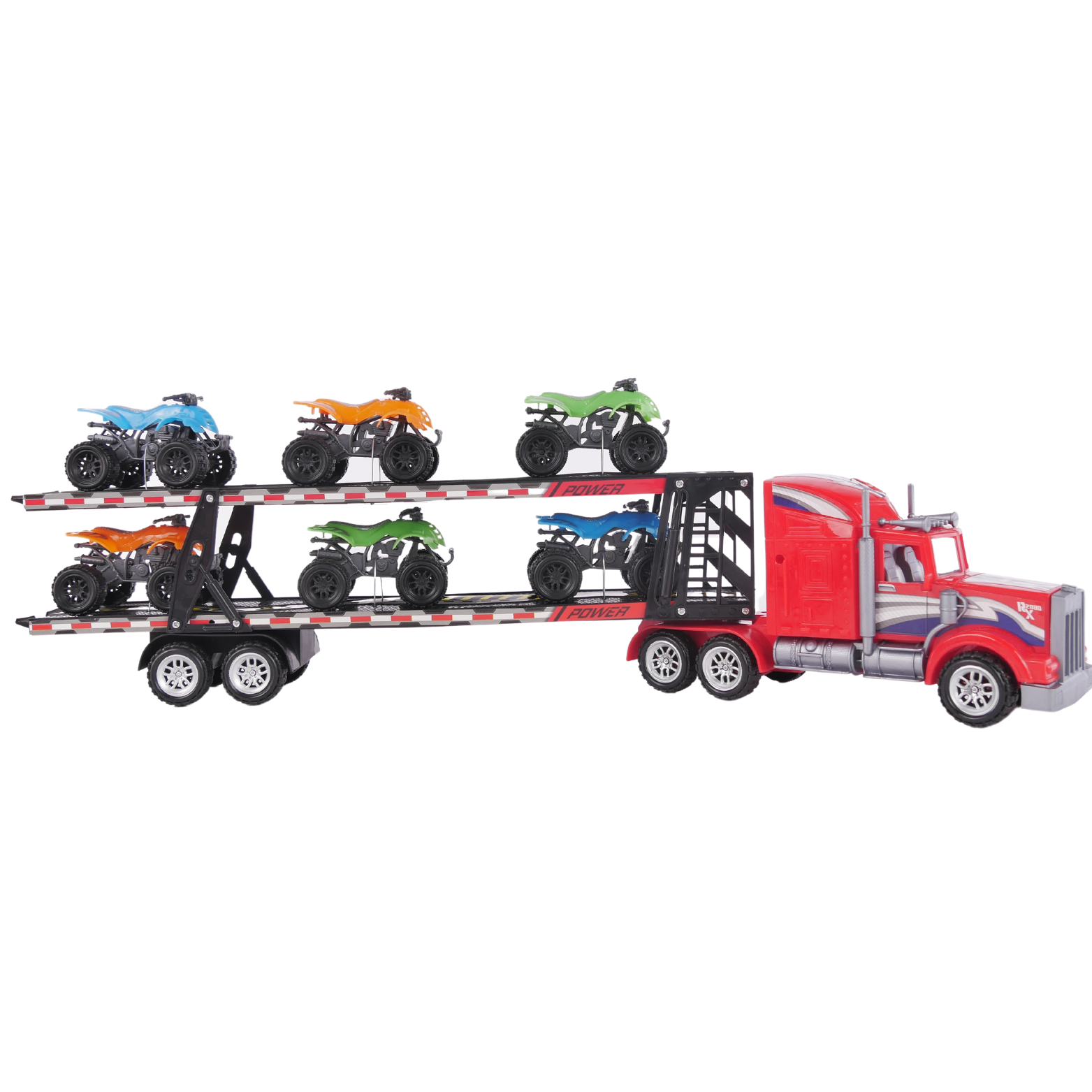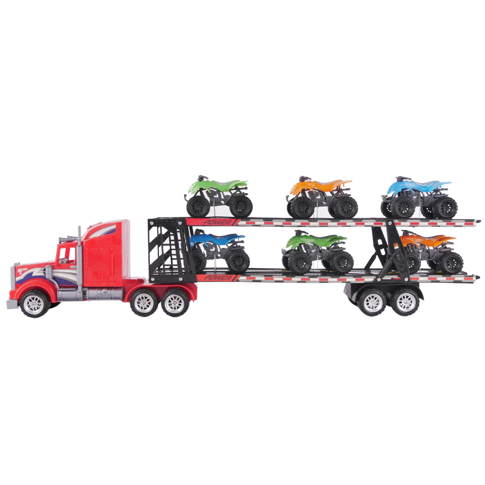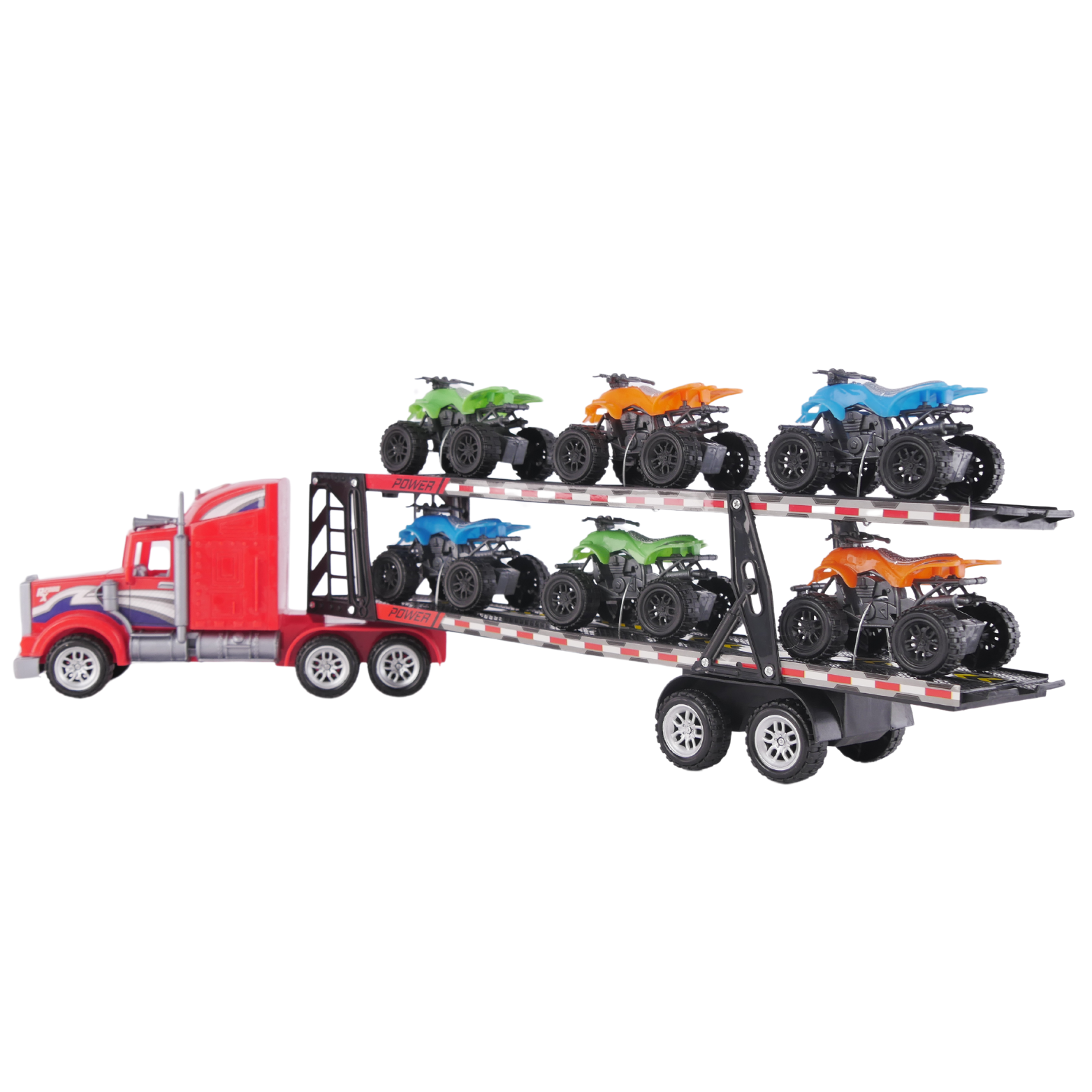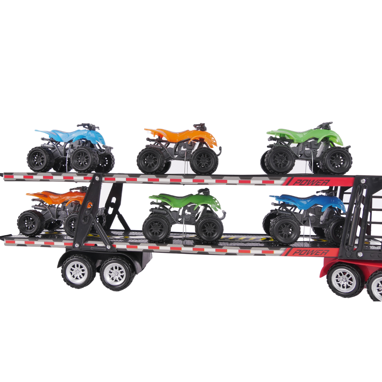 Przedstawiamy niesamowitą lawetę do transportu autek, która zapewni Twojemu dziecku godziny ekscytującej zabawy. Ta realistycznie wyglądająca laweta, nie tylko dostarcza emocji związanych z kierowaniem pojazdem, ale także uczy podstaw logistyki i transportu. W zestawie znajdują się 6 różnokolorowych quadów, które zapewnią niesamowitą i wciągającą zabawę.