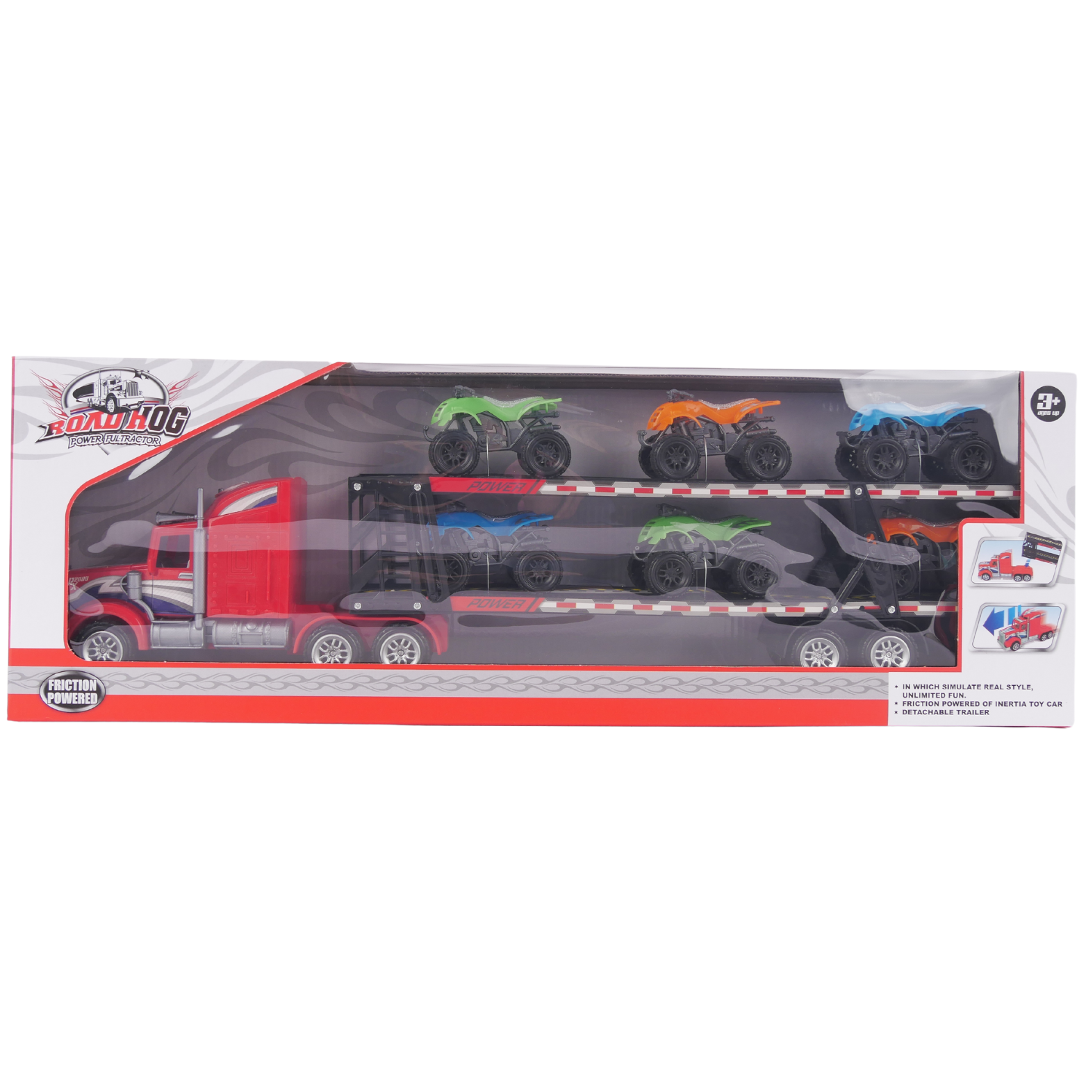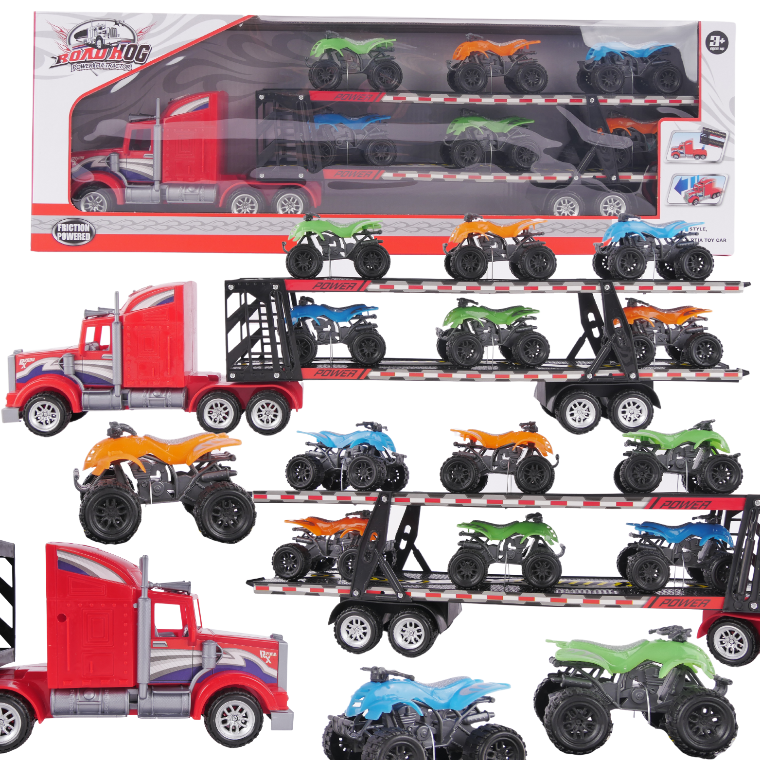 Bezpieczne wykonanie: ciężarówka oraz quady wykonane zostały z wysokiej jakości, bezpiecznych materiałów, które są trwałe i odporne na uszkodzenia.