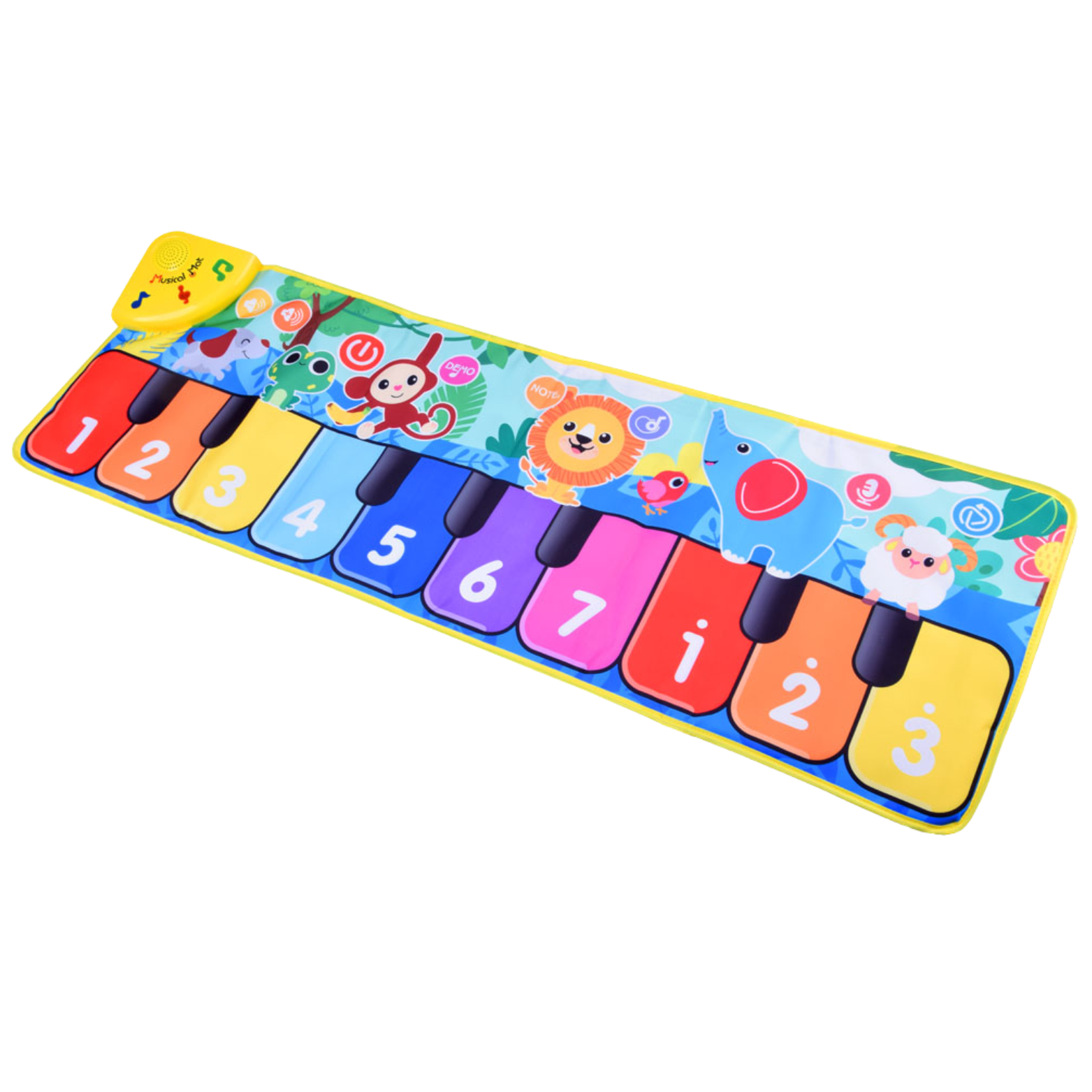 Mata posiada duże, kolorowe klawisze w kształcie pianina, które reagują na dotyk. Każdy klawisz wydaje dźwięk muzyczny, co pozwala dziecku na tworzenie swojej własnej melodii. Dodatkowo, każdy klawisz oznaczony jest cyfrą, co pomaga w nauce liczenia.