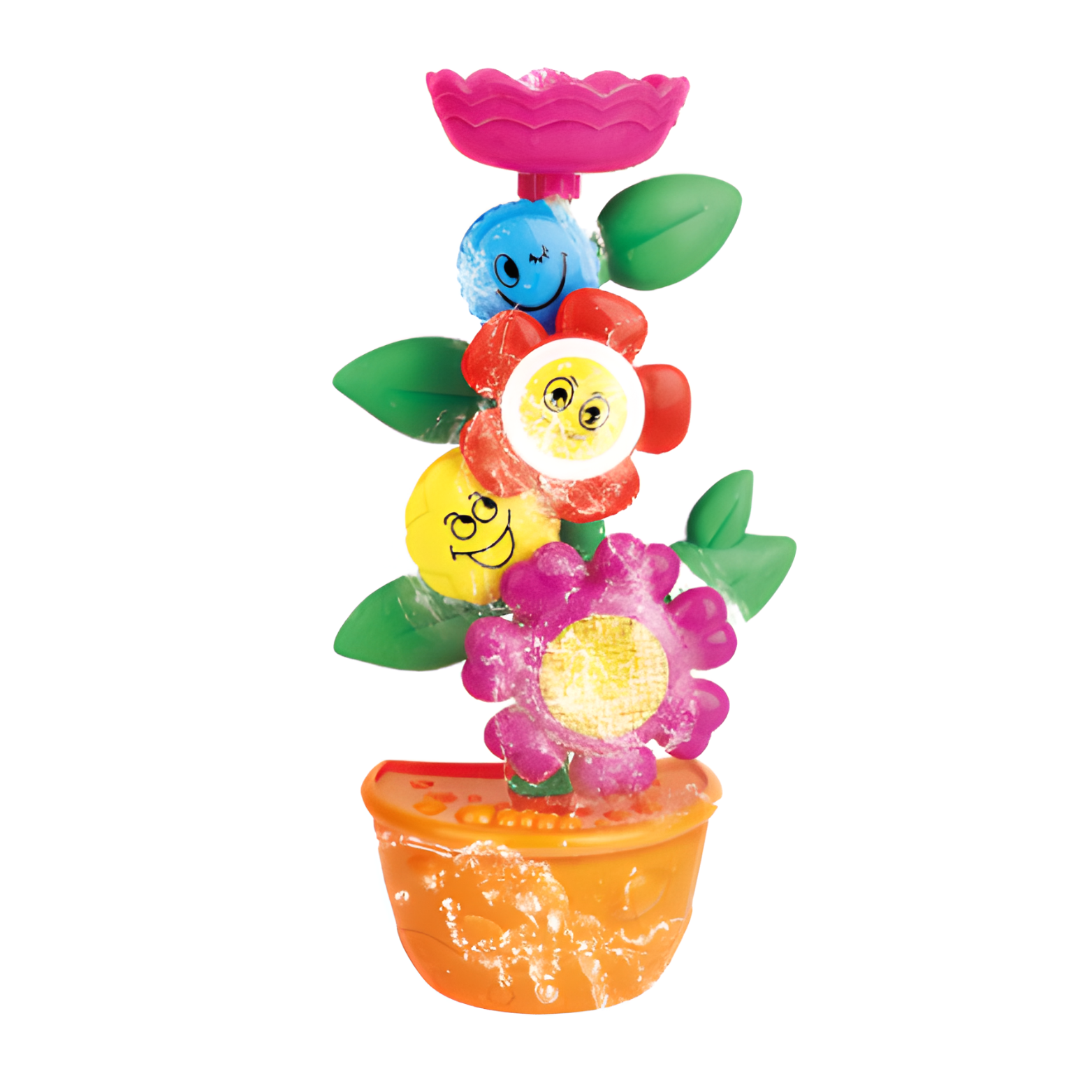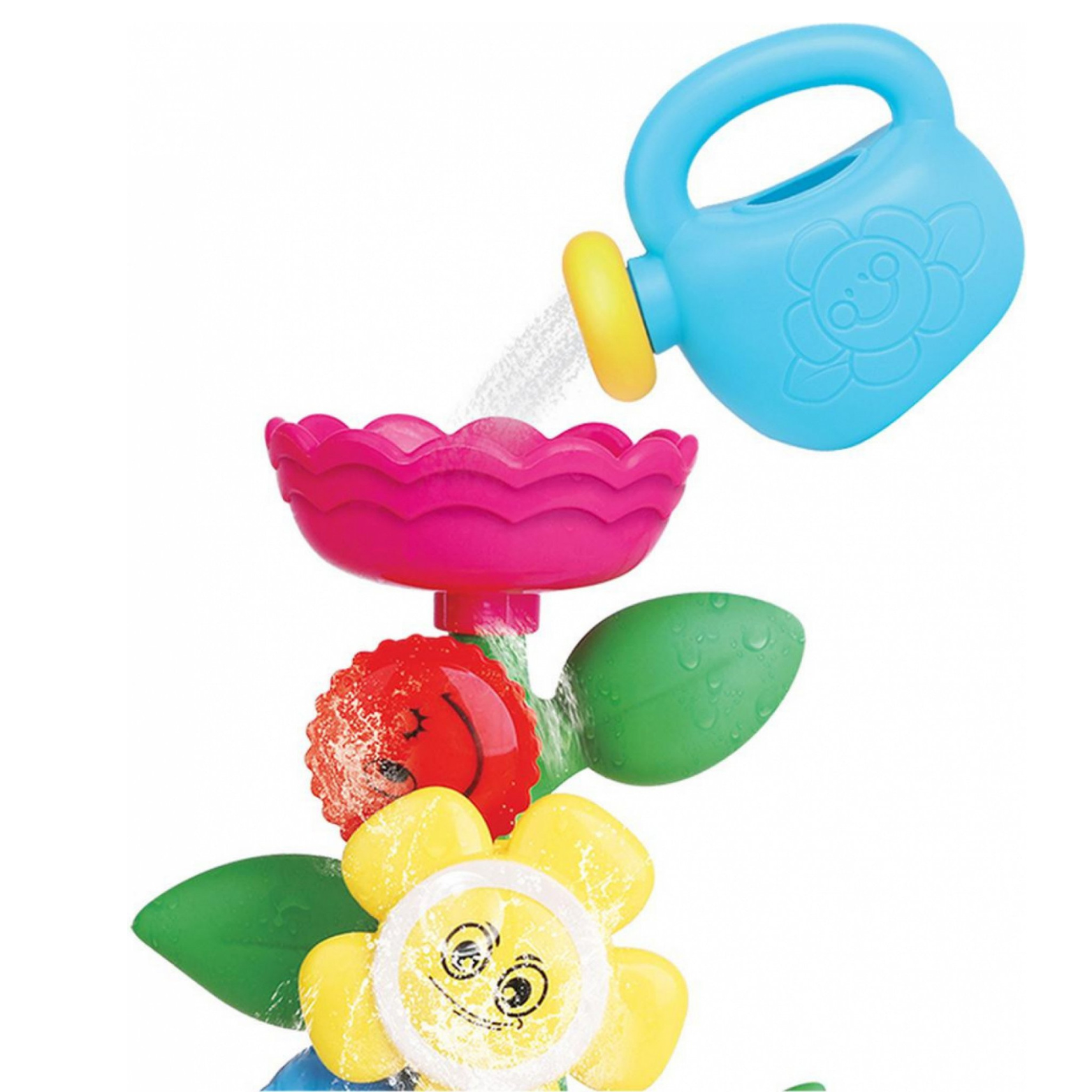 Zestaw składa się z doniczki z kwiatami w postaci młyna wodnego. Gdy dziecko naleje wodę z góry, woda spływa przez płatki kwiatów, powodując ich wirowanie. Magiczna fontanna w kształcie kwiatów dostarcza mnóstwo radości i uśmiechu.