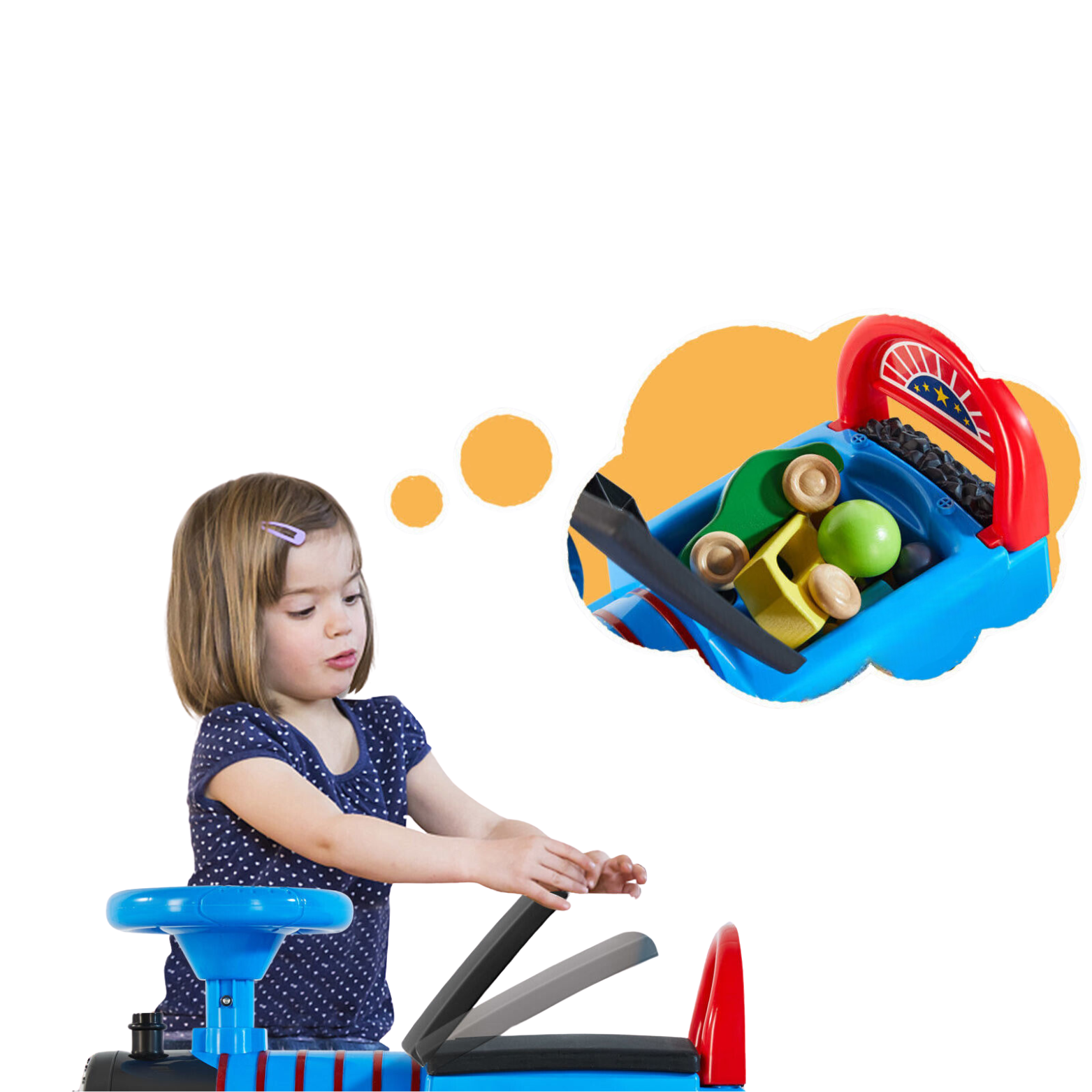 Praktyczny schowek: Pod siedzeniem znajduje się wygodny schowek, który umożliwia przechowywanie ulubionych zabawek czy innych drobiazgów. To praktyczne rozwiązanie, które uczy dziecko organizacji i odpowiedzialności za swoje rzeczy.