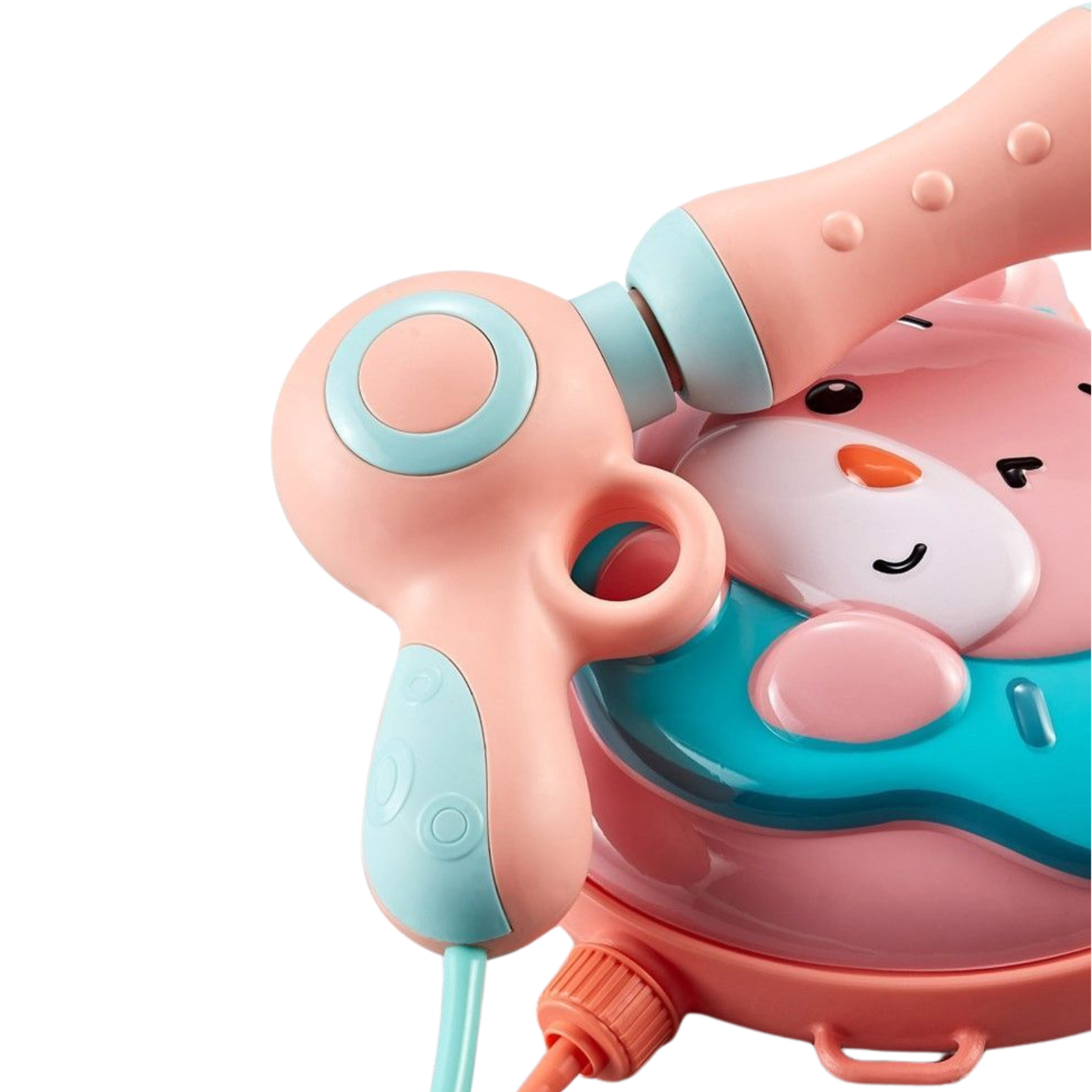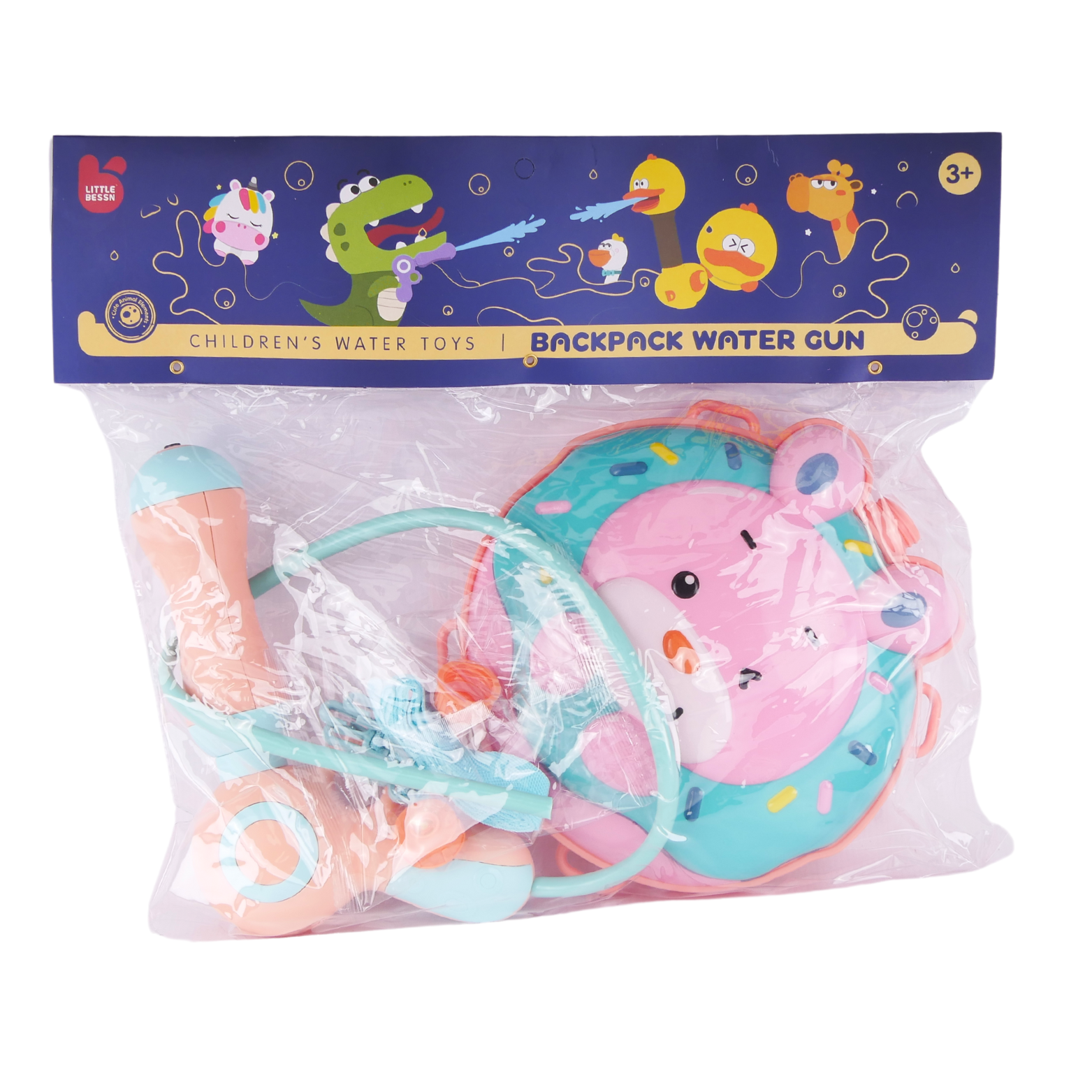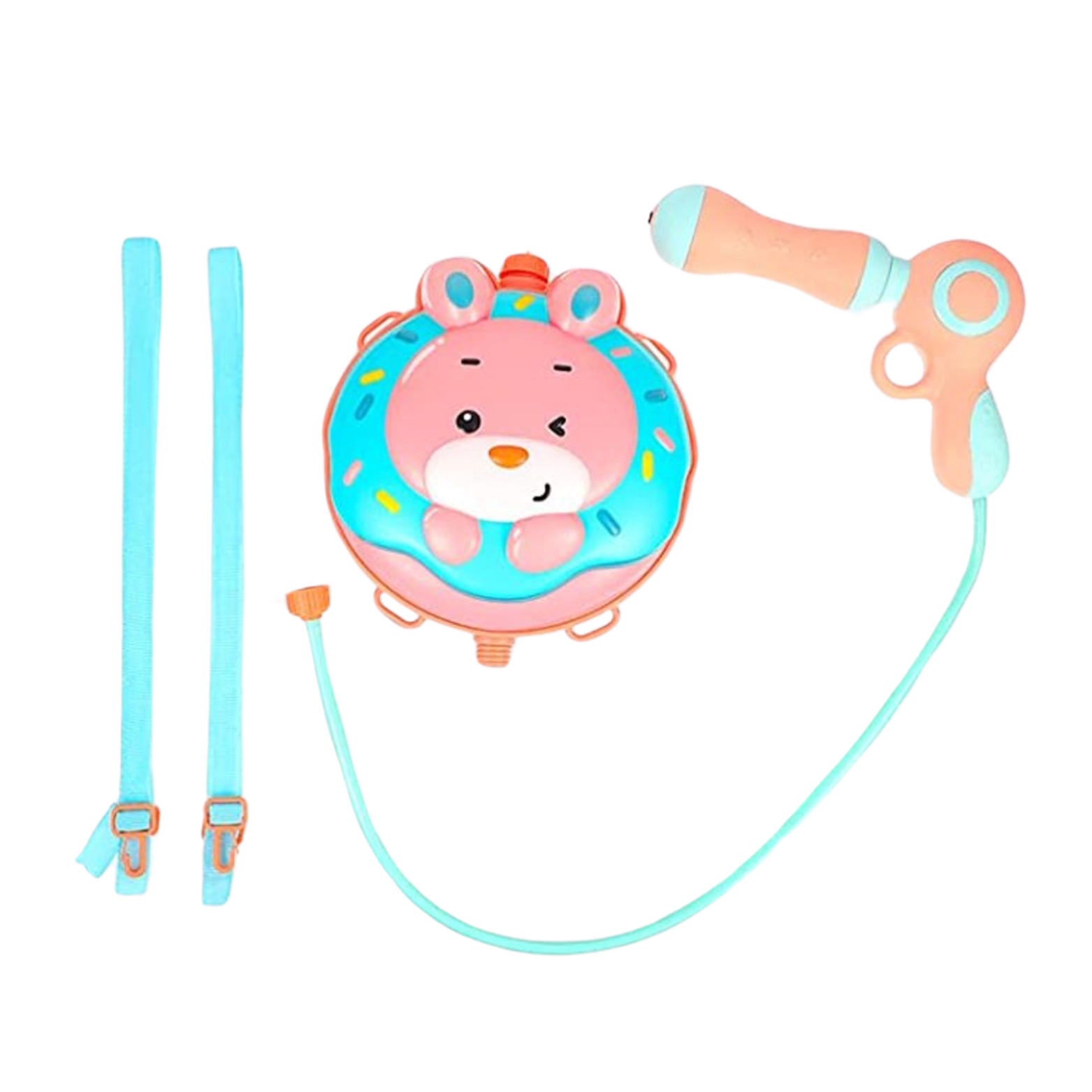 Atrakcyjny design: Uroczy motyw kreskówkowego królika z pączkiem dodaje przyjaznego klimatu całej zabawie. Jasne i żywe kolory, słodka grafika oraz precyzyjne detale sprawiają, że pistolet na wodę stanie się ulubioną zabawką każdego malucha oraz jego niezbędnym towarzyszem podczas upalnych dni.