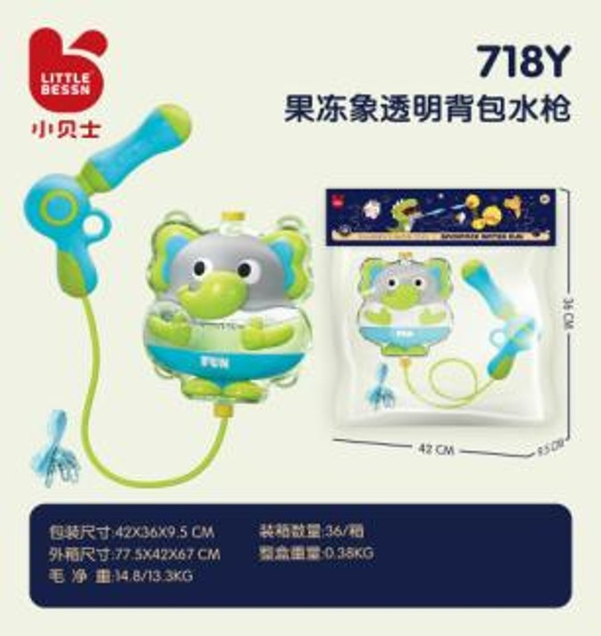 Pistolet Na Wodę Z Plecakiem Słonik Duży Zbiornik Przezroczysty Szelki