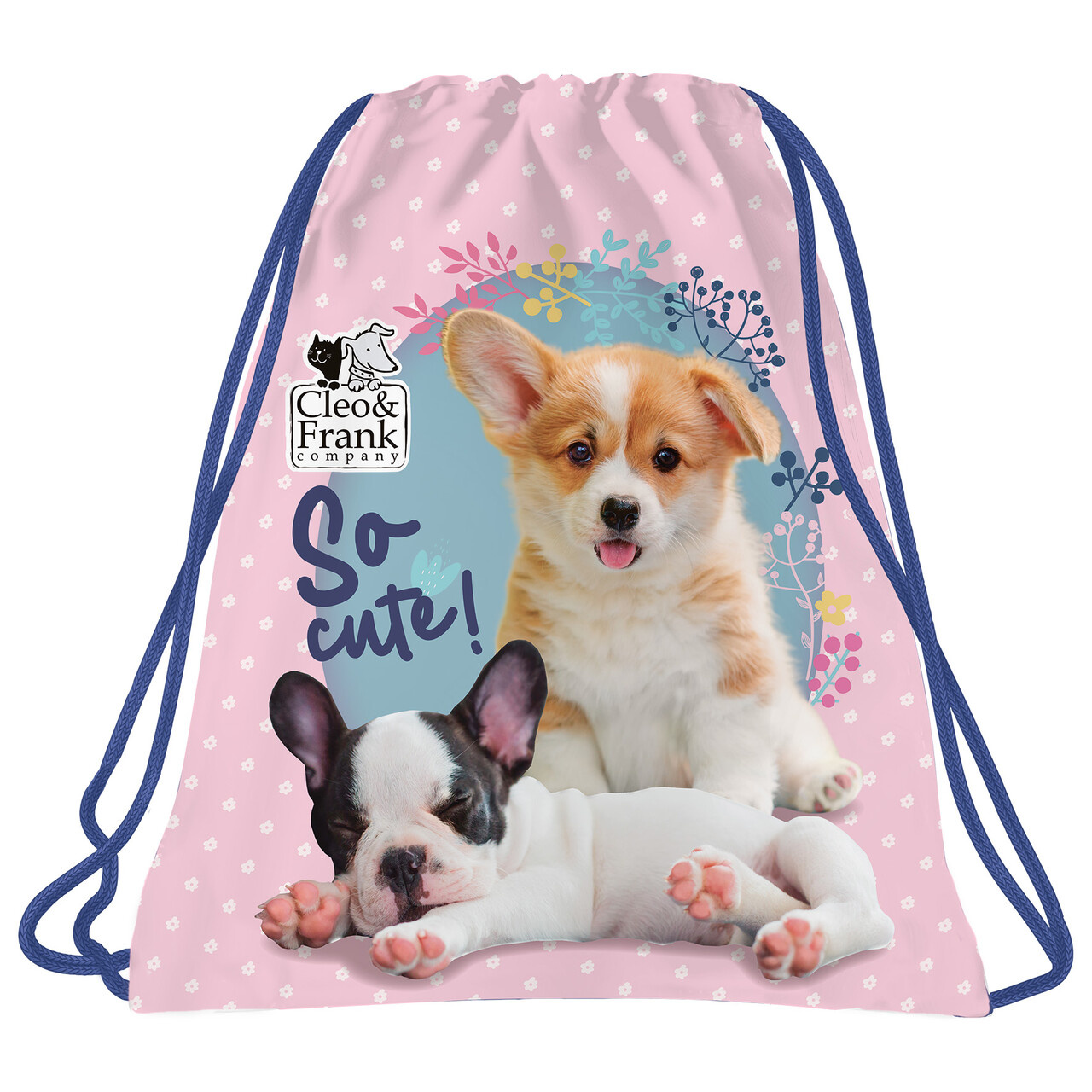 Dwustronny, posiada podwójne boczne sznurki, które umożliwiają noszenie worka w rękach, na ramieniu czy na plecach.