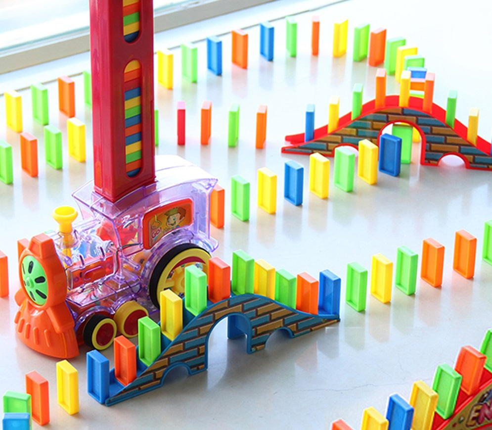 Pociąg domino został zaprojektowany tak, aby rozwijać umiejętności myślenia, koordynację wzrokowo-ruchową i rozpoznawanie kolorów u dzieci. To znakomita zabawa, która jednocześnie uczy.