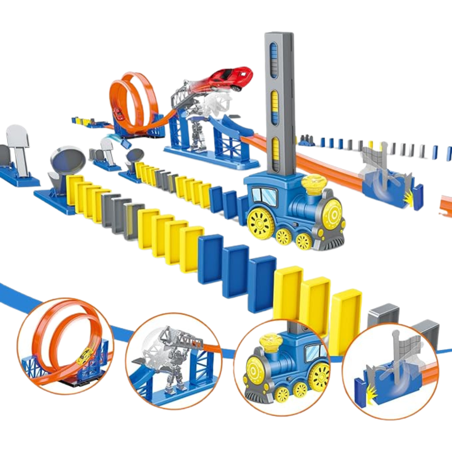 Zestaw klocków domino to niezwykła zabawka, która przeniesie Twoje dziecko w świat fascynujących reakcji łańcuchowych i dynamicznych wyścigów. Zawierający 120 klocków w trzech kolorach, tor wyścigowy z pętlą 360°, samochodzik, lokomotywę i elementy konstrukcyjne, ten zestaw oferuje nieograniczone możliwości zabawy. Stworzony z myślą o rozwoju logicznego myślenia i wyobraźni, zestaw domino to gwarancja wielu godzin kreatywnej i edukacyjnej rozrywki.
