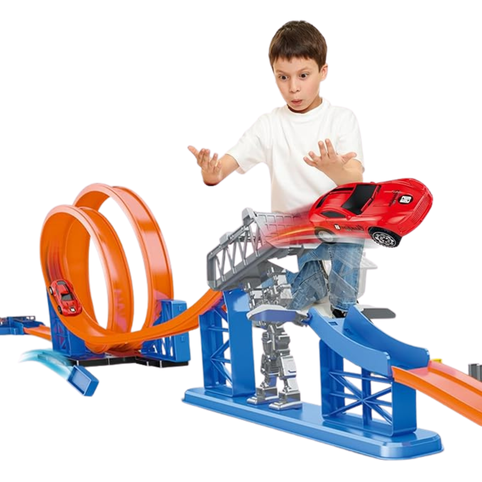 Tor wyścigowy: Tor wyścigowy z pętlą 360°, mostami i wyrzutnią dodaje dynamiki i sprawia, że zabawa staje się jeszcze bardziej ekscytująca. Dzieci mogą tworzyć najróżniejsze konfiguracje torów, co rozwija ich kreatywność.