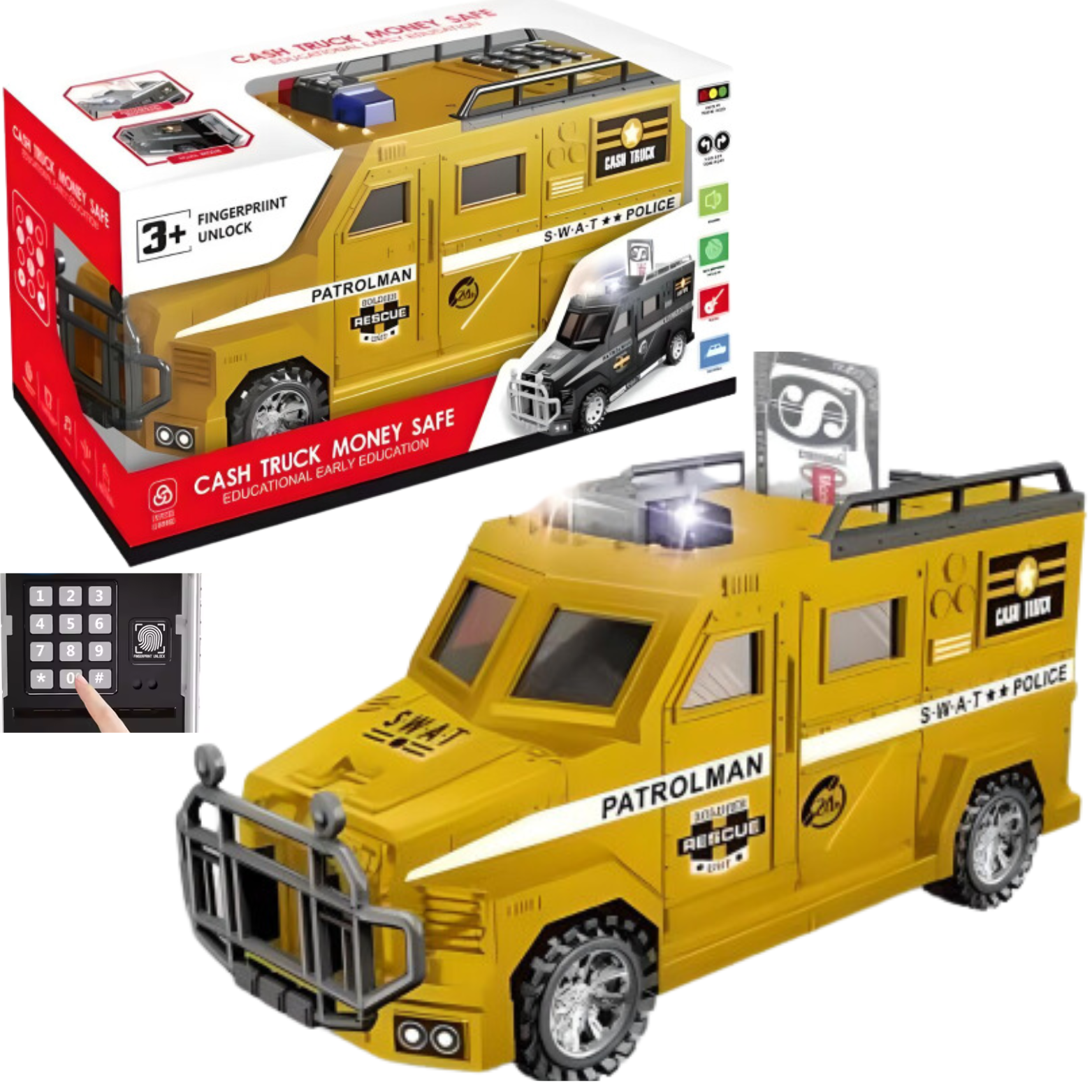 Pojazd policyjny dla dzieci, to nie tylko niezwykły samochód, ale również fascynująca skarbonka. Zaprojektowany z myślą o młodych policjantach, to auto, nie tylko zachwyca wyglądem, ale także stymuluje wyobraźnię i rozwija zdrowe nawyki oszczędzania. Sejf dla dzieci to niezwykłe połączenie zabawy i nauki odpowiedzialności finansowej. Ten innowacyjny produkt umożliwia dzieciom bezpieczne przechowywanie swoich oszczędności, ucząc je wartości oszczędzania i zarządzania pieniędzmi w przyjemny i interaktywny sposób. Poprzez realistyczne funkcje, takie jak: wpisywanie kodu, wkładanie banknotów oraz monet, dziecko poczuje się jak dorosły!