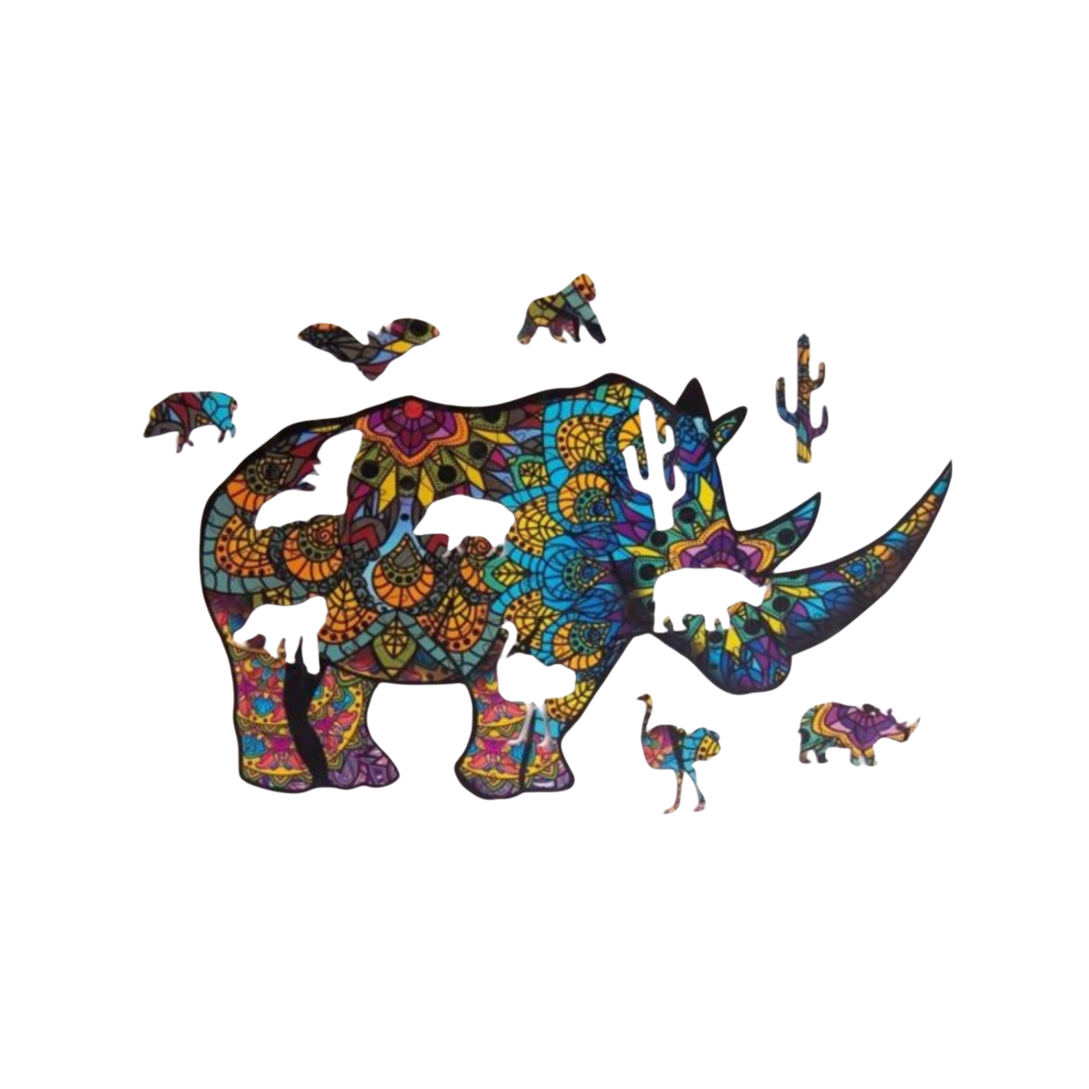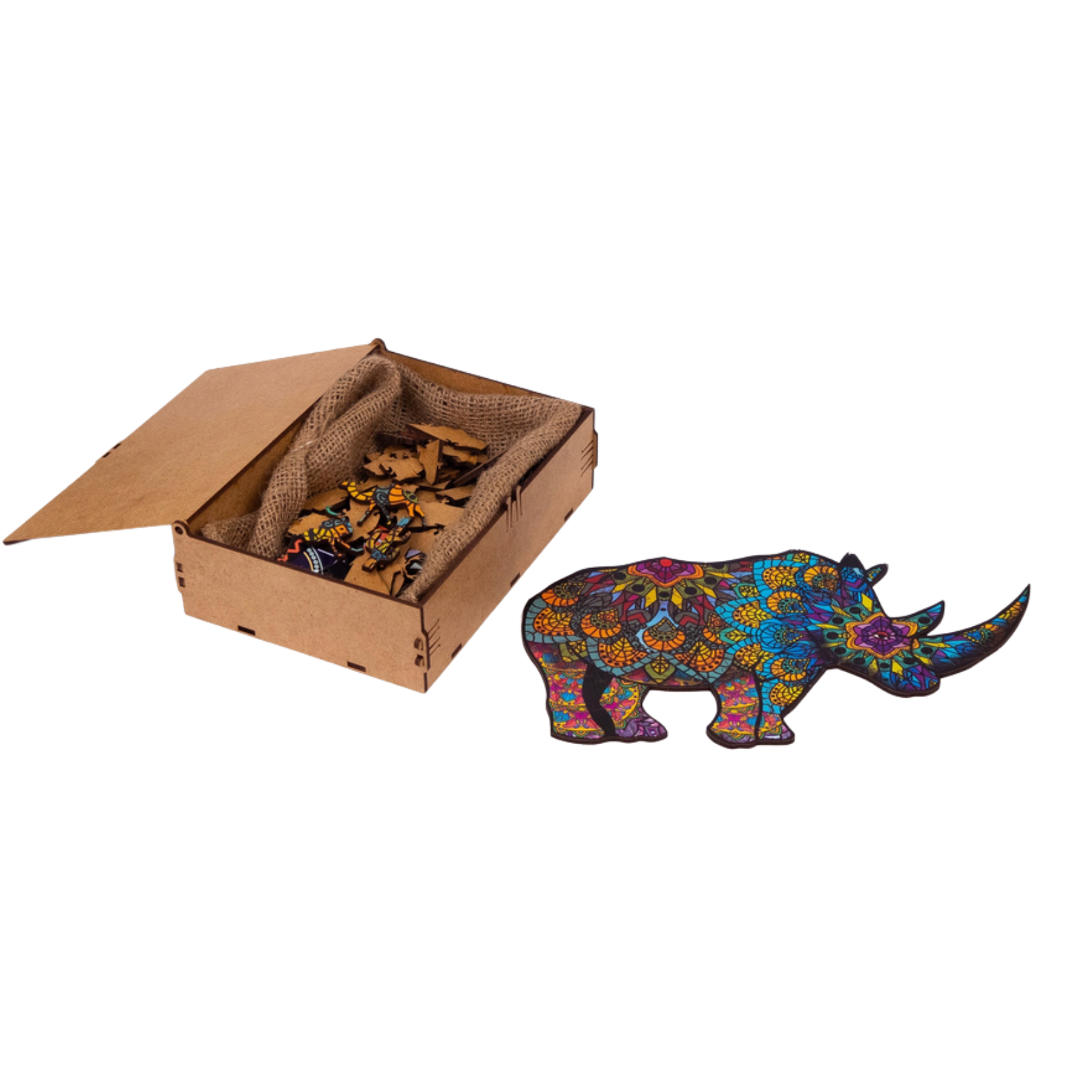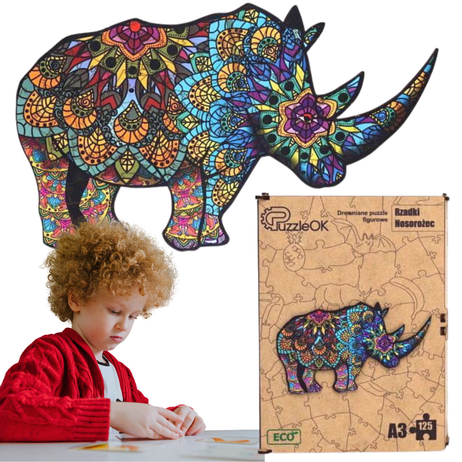 PUZZLE DREWNIANE UKŁADANKA RZADKI NOSOROŻEC ZESTAW PUZZLI A4 OZDOBA