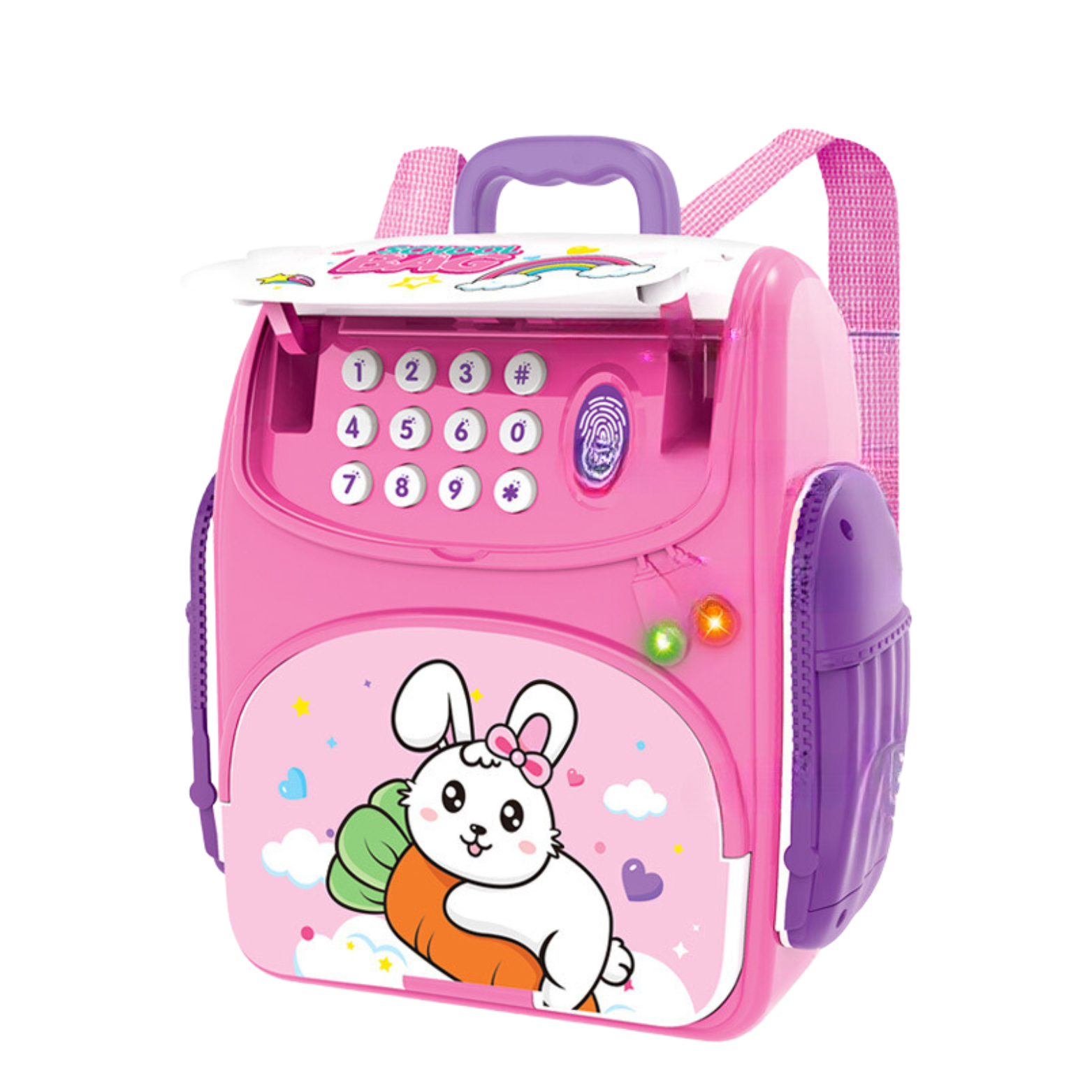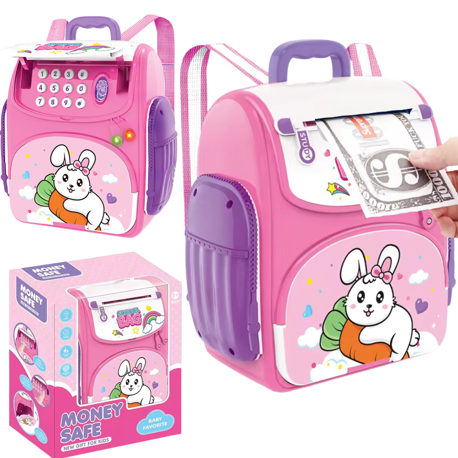 Skarbonka Sejf Elektryczny Plecak Królik Bankomat Pieniądze Banknoty Hasło
