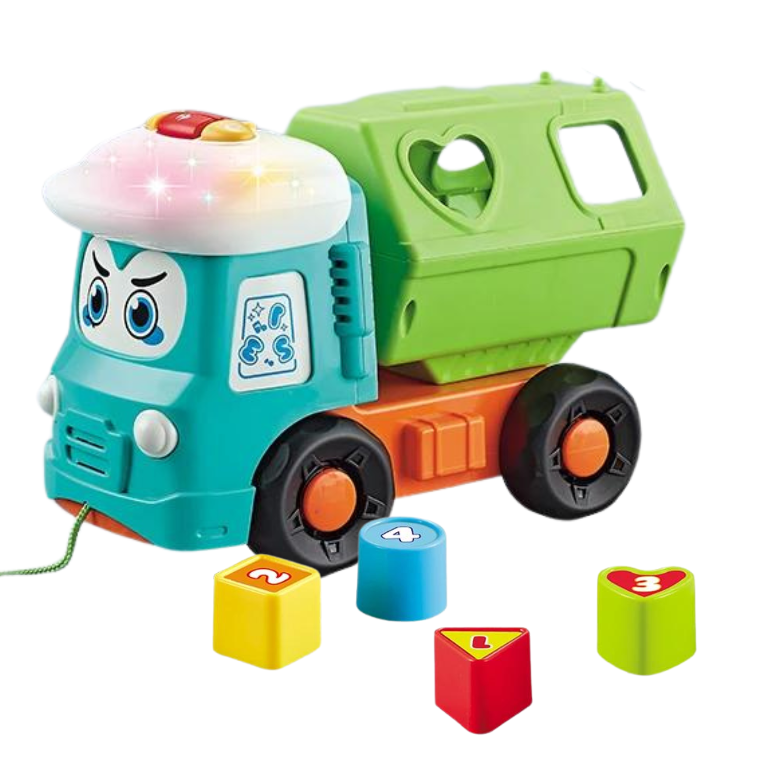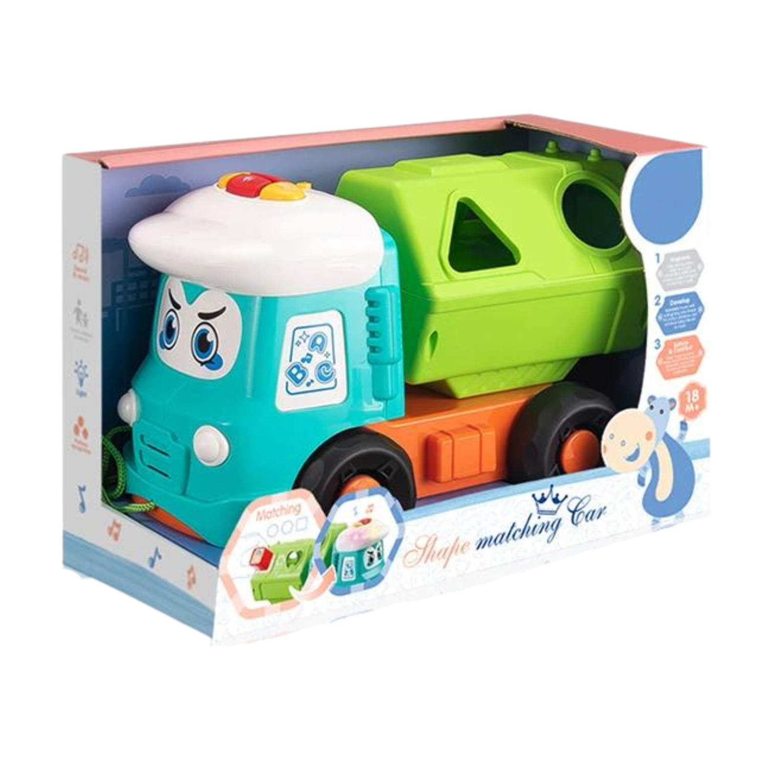 Maluch może wrzucać kolorowe klocki do wnętrza ciężarówki, ucząc się jednocześnie rozpoznawania różnych kształtów. To doskonały sposób na rozwijanie umiejętności poznawczych. Zabawa sorterem wspiera sprawność manualną dziecka, pomagając w precyzyjnym manipulowaniu przedmiotami.
