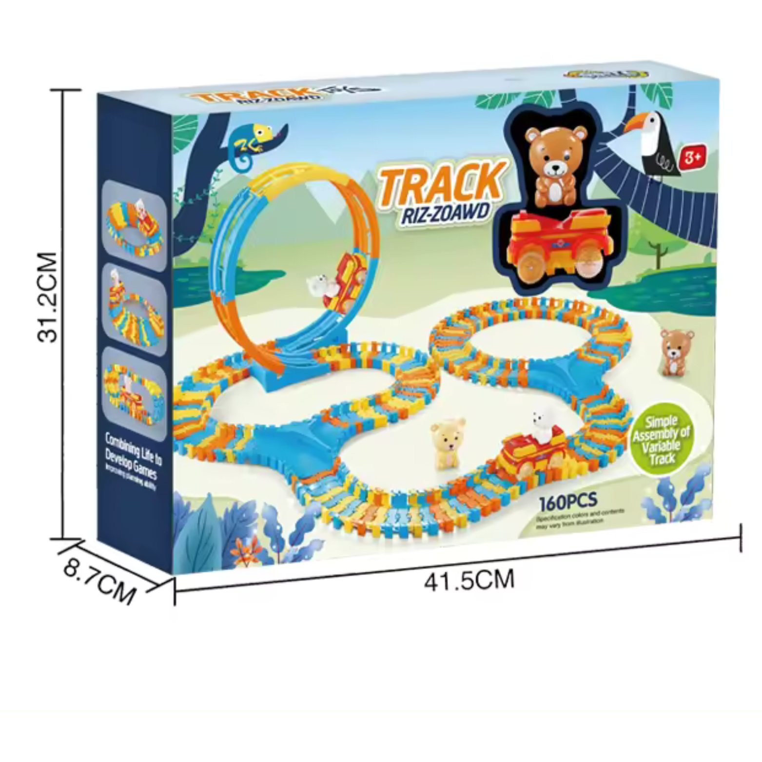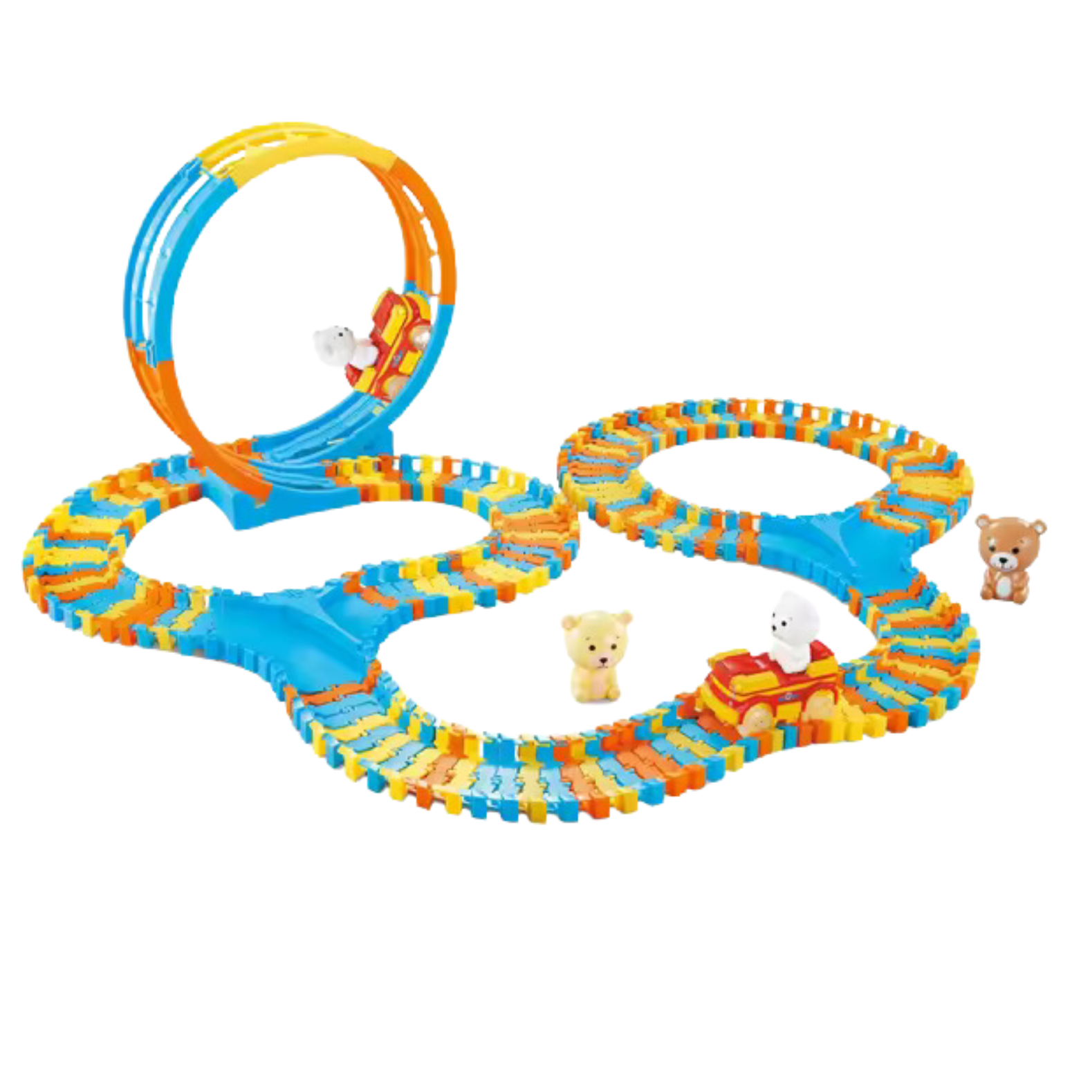 Przygotuj się na ekscytujące przygody i dynamiczne wyścigi z zestawem toru wyścigowego! Ten niesamowity zestaw łączy w sobie pasję do wyścigów samochodowych z fascynującym światem misiów, tworząc niepowtarzalne doświadczenie rozrywki dla dzieci i miłośników przygód. Tor posiada różne wzniesienia, pętle, rondo, dzięki którym jeszcze zabawa staje się jeszcze bardziej urozmaicona!