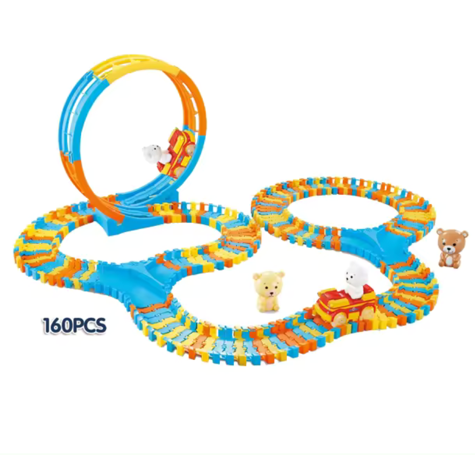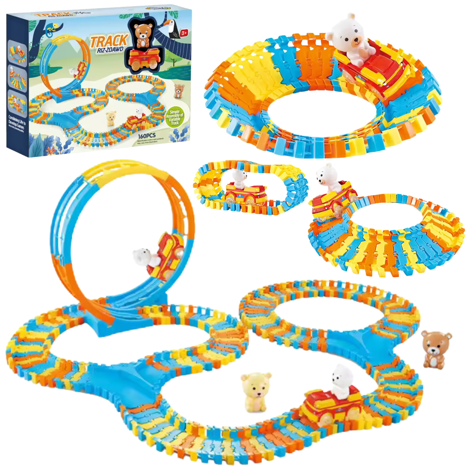 Tor Wyścigowy Misie Niedźwiadki Zestaw Park Autko Pętla Figurki Klocki 160E