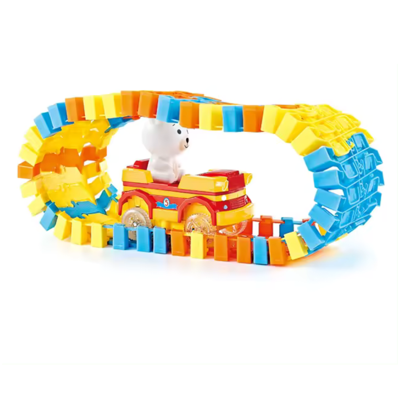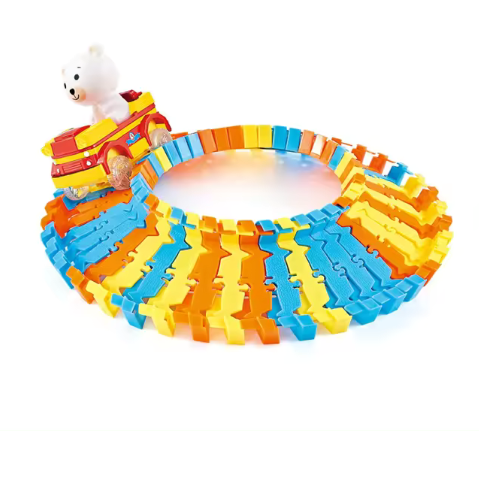 Elastyczność i Kreatywność: Zestaw zapewnia wiele możliwości konfiguracji toru, co pozwala dzieciom eksperymentować z różnymi układami i tworzyć własne trasy wyścigowe.