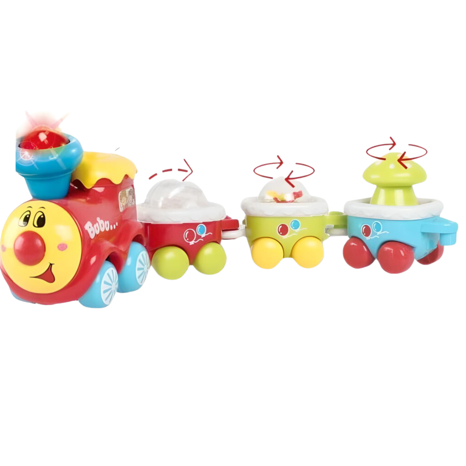 Efekty świetlne: Zabawka posiada również efekty świetlne, które mogą być aktywowane podczas jazdy pociągu. Światła migają lub świecą się w różnych kolorach, co wzbogaca doświadczenie wizualne dzieci i dodaje atrakcyjności zabawie.