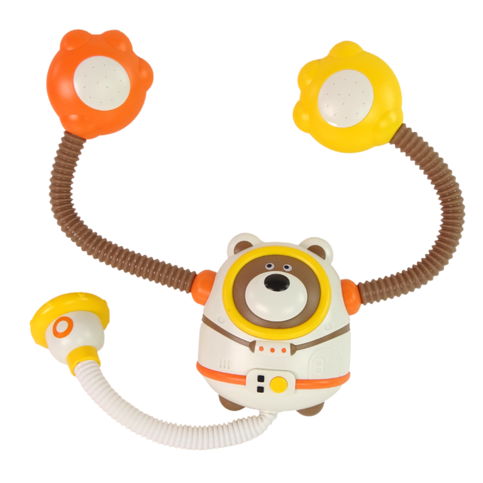 Miś w kostiumie astronauty z funkcją prysznica do wanny to idealna rozrywka dla maluchów, która urozmaici codzienne kąpiele i sprawi, że nawet dzieci, które nie przepadają za tą czynności, z pewnością ją pokochają. Uroczy motyw kolorowego niedźwiadka przyciągnie uwagę zarówno rodziców, jak i ich pociech i będzie znakomitym dodatkiem do łazienki. Przyssawki przy zabawce zapewniają trwałe mocowanie do ściany lub innych powierzchni. Łatwość obsługi oraz bezpieczeństwo pozwolą najmłodszych maluchom cieszyć się niezwykła zabawą, która zamieni każdą kąpiel w niezwykłą przygodę. 2 tryby przepływu wody umożliwiają dostosowanie zabawki do indywidualnych potrzeb.